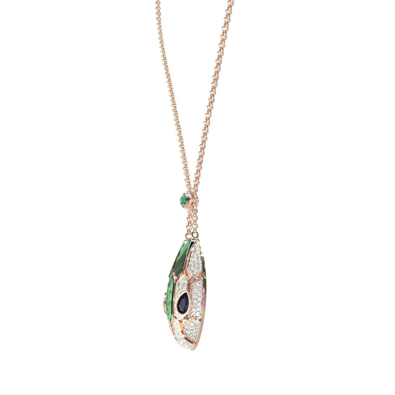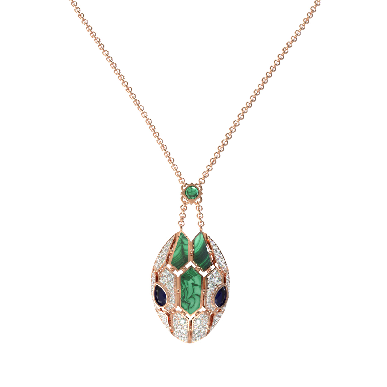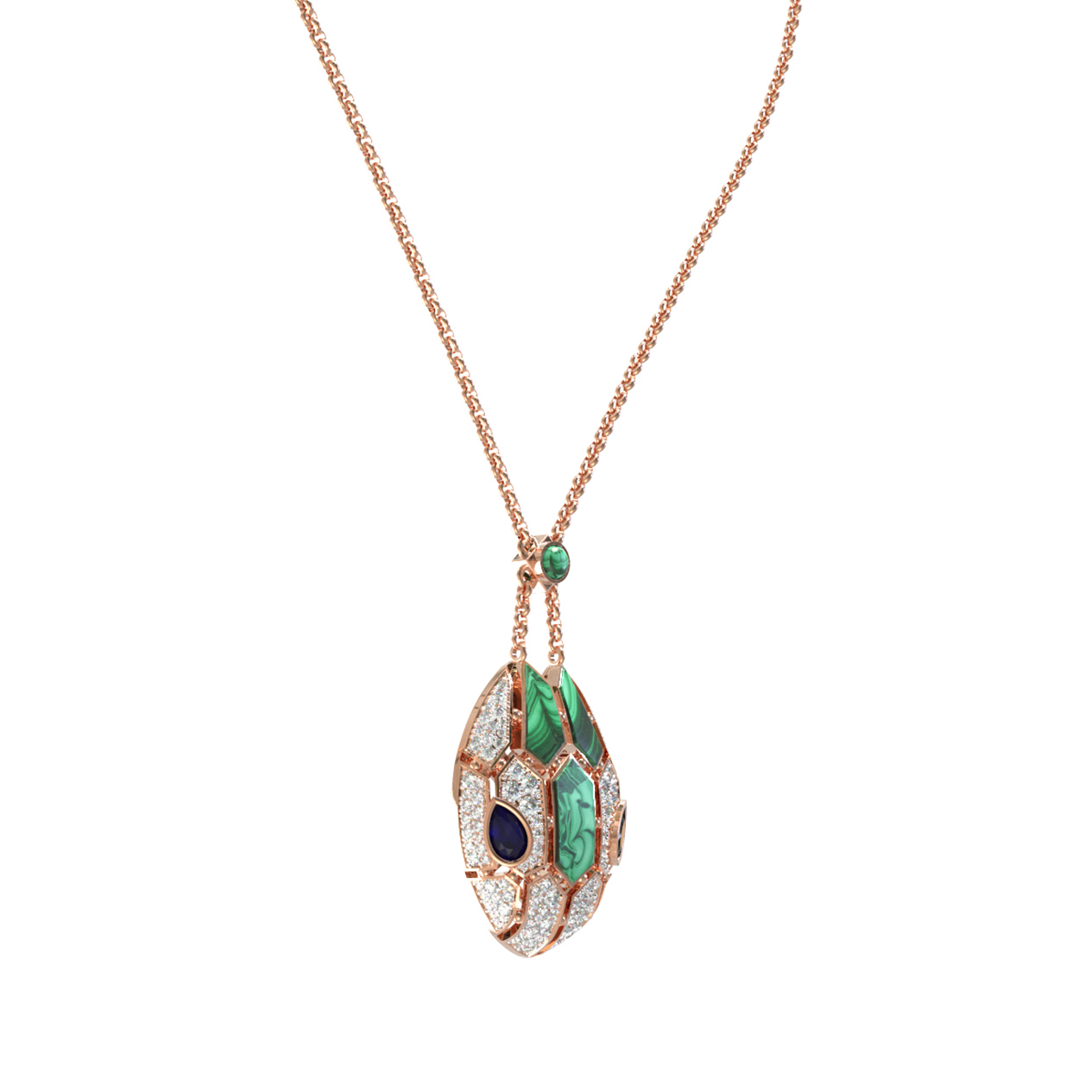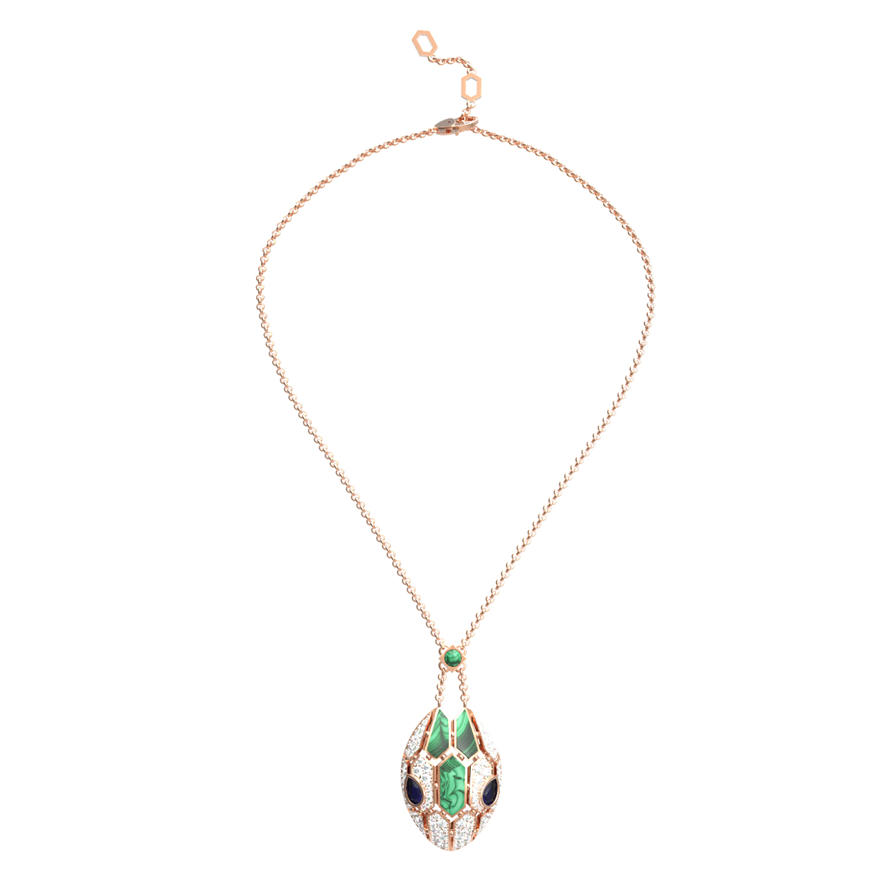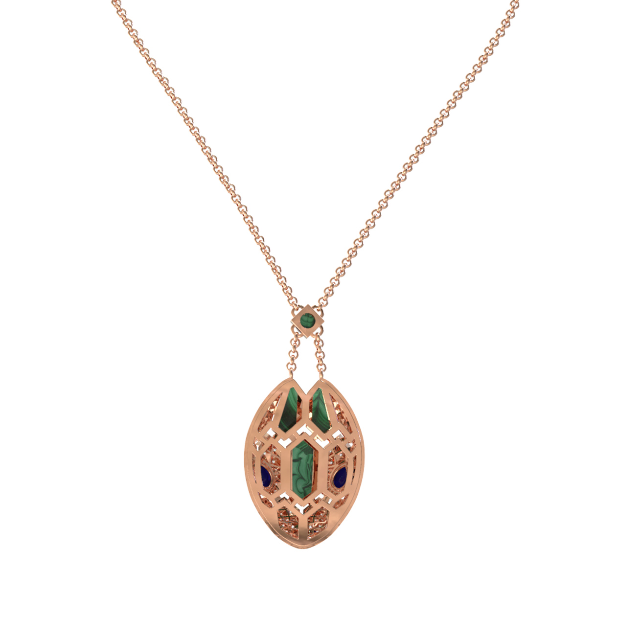 Колье из красного золота 585 пробы c бриллиантами, сапфиром и малахитом