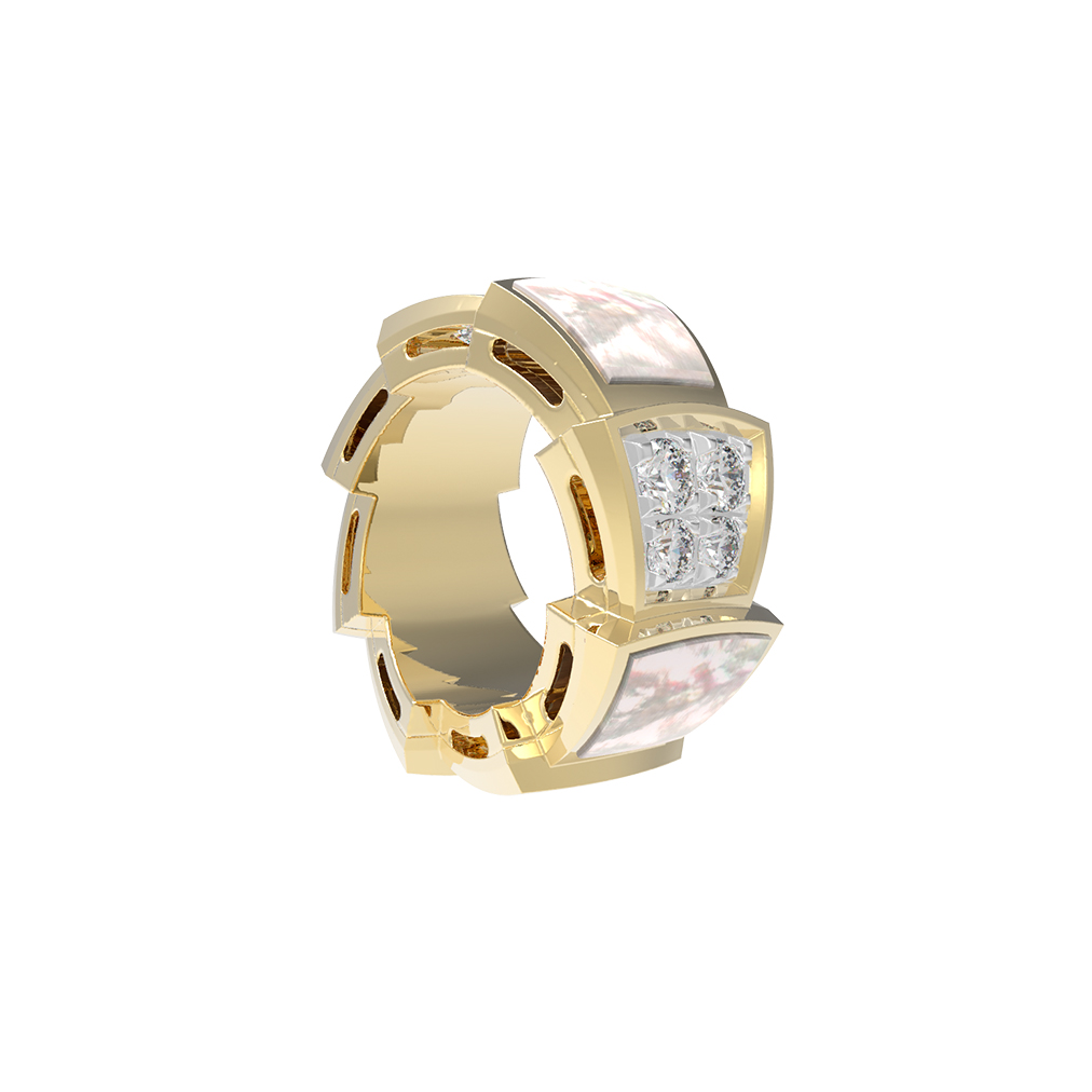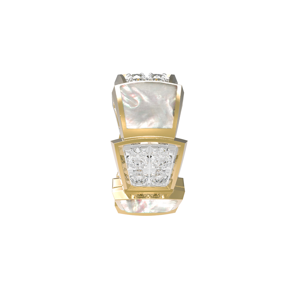 Основа изделия выполнена из благородного лимонного золота 585 пробы. Мягкий, теплый оттенок драгоценного металла эффектно сочетается с контрастными вставками. Ювелиры использовали 16 вставок круглой формы: сияющие белые бриллианты соседствуют с нежным перламутром, создавая игру света и фактур. Комбинация классического блеска камней и матового, перламутрового перелива придает подвеске глубину и особый шарм.