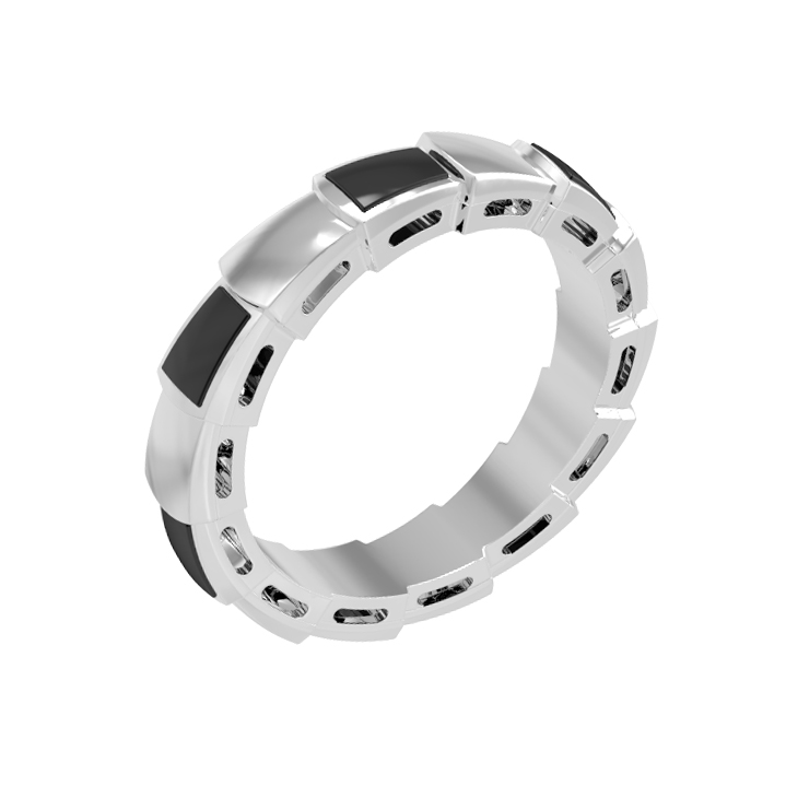 Кольцо из белого золота 585 пробы из коллекции De Luxe — Серпенти станет ярким акцентом вашего образа. Дизайн украшения, вдохновленный грацией скорпионов, мастерски воплощен в металле холодного оттенка. Строгие геометрические формы и контрастное сочетание материалов придают изделию особенную выразительность. В качестве декора использованы 7 вставок из натурального оникса глубокого черного цвета, которые гармонично дополняют сияние драгоценного металла.