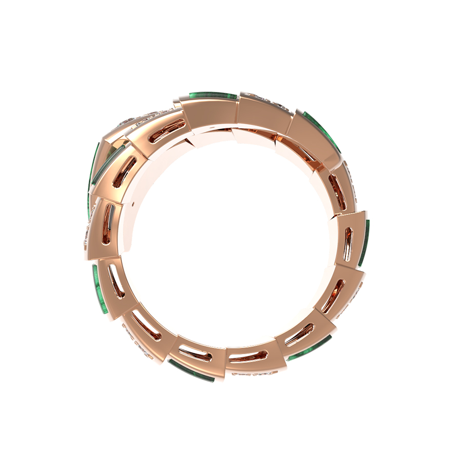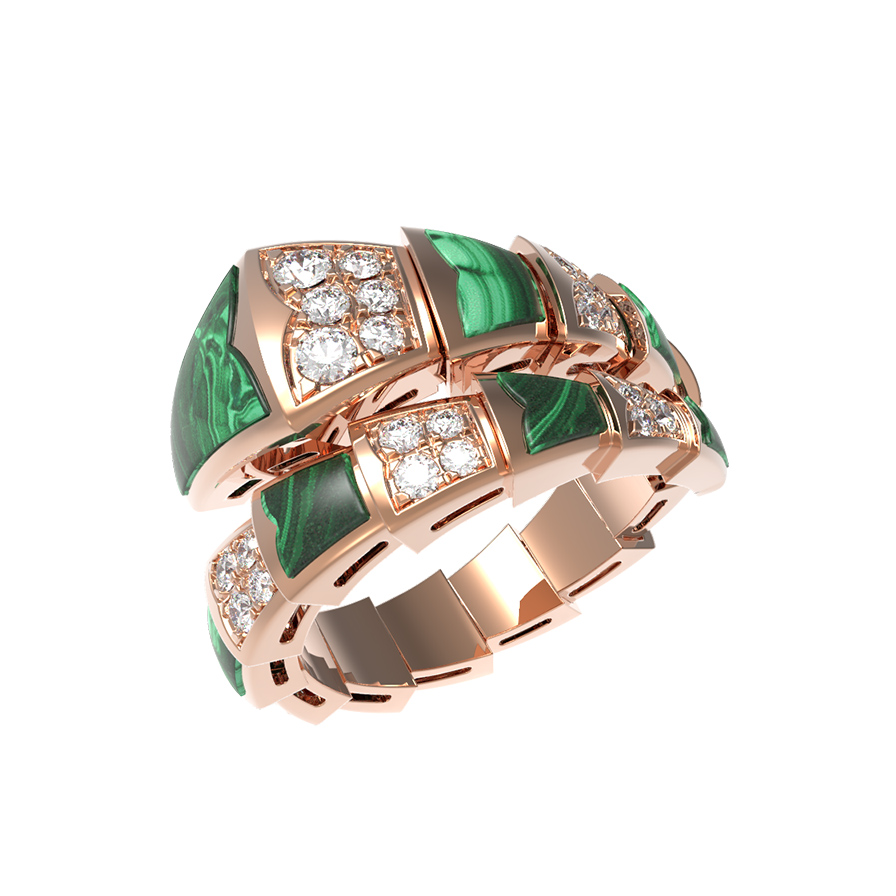 Кольцо из коллекции De Luxe — Серпенти — это ювелирный шедевр, воплощающий смелый и узнаваемый дизайн в форме скорпиона. Украшение выполнено из благородного красного золота 585 пробы, чей теплый оттенок подчеркивает роскошную комбинацию вставок. Эффектный контраст создают глубокий зеленый цвет малахита и ослепительное сияние 490 бриллиантов. Каждая вставка имеет безупречную форму круга, что придает изделию гармоничный и завершенный вид.