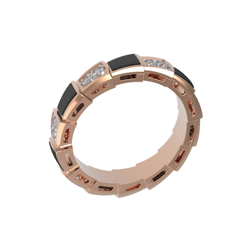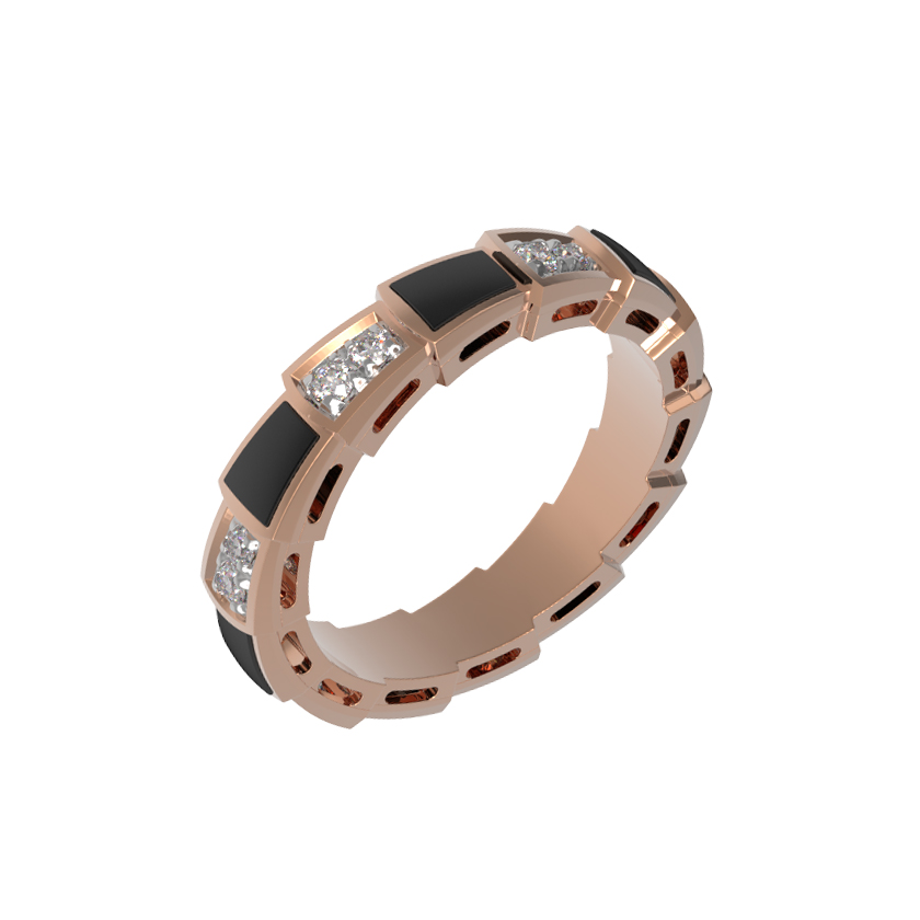 Кольцо из красного золота 585 пробы c бриллиантами и ониксом