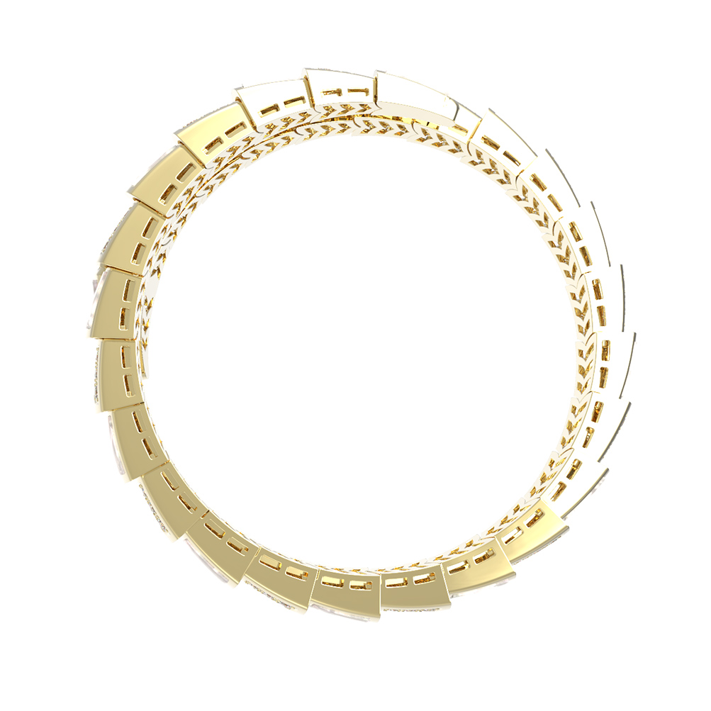 Эффектный браслет из лимонного золота 585 пробы из коллекции De Luxe — Серпенти станет воплощением вашего безупречного стиля и статуса. Дизайн изделия вдохновлен образом грациозного скорпиона, чьи плавные, гибкие линии создают ощущение живого движения на запястье. Основа браслета выполнена из благородного лимонного золота, чей теплый солнечный оттенок идеально подчеркивает роскошное сочетание вставок.