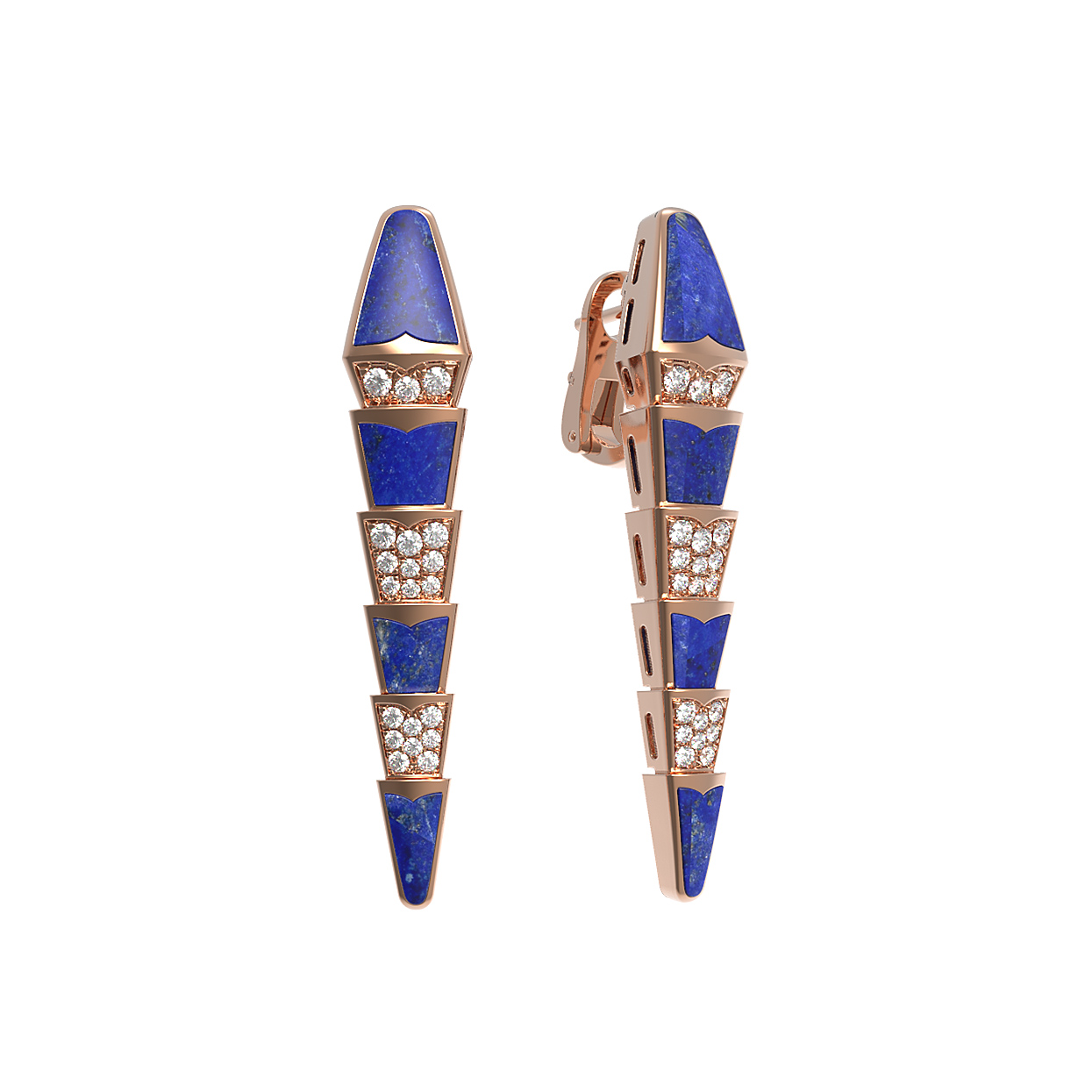 Роскошные серьги из коллекции De Luxe — Серпенти — это воплощение смелой эстетики и безупречного ювелирного мастерства. Изделие выполнено из благородного красного золота 585 пробы, чей теплый оттенок идеально гармонирует с глубоким синим цветом натурального лазурита. Оригинальный дизайн украшения вдохновлен образом скорпиона, что придает аксессуару нотки дерзости и загадочности.