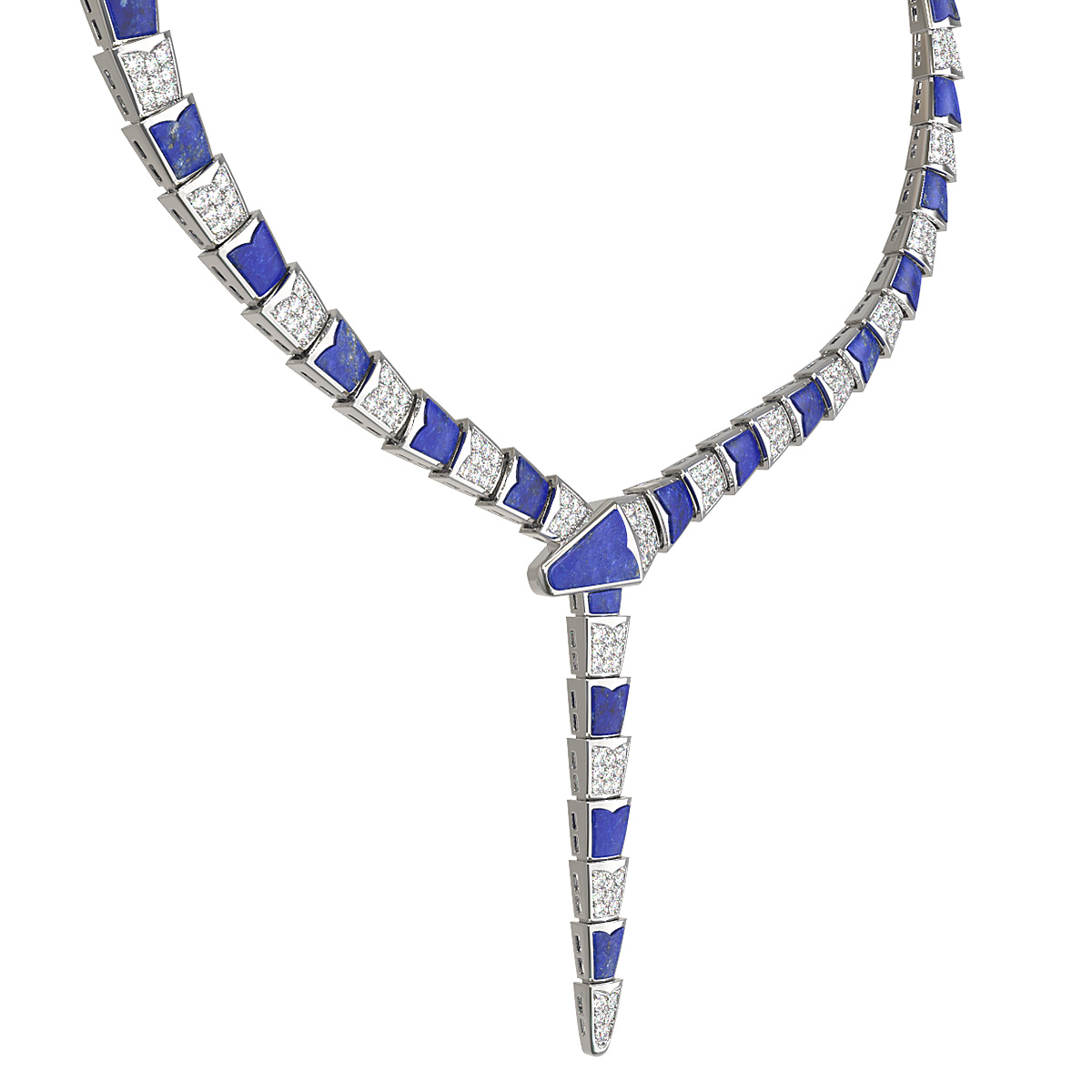 Дизайн изделия отличается особой эстетикой: сочетание белых бриллиантов и глубокого синего лазурита придает колье притягательную выразительность. Вставки круглой формы инкрустированы в металл с ювелирной точностью, общее количество камней составляет 310 штук. Холодный блеск бриллиантов и насыщенный оттенок лазурита делают это украшение заметным акцентом, который подойдет как для женщин, так и для мужчин.