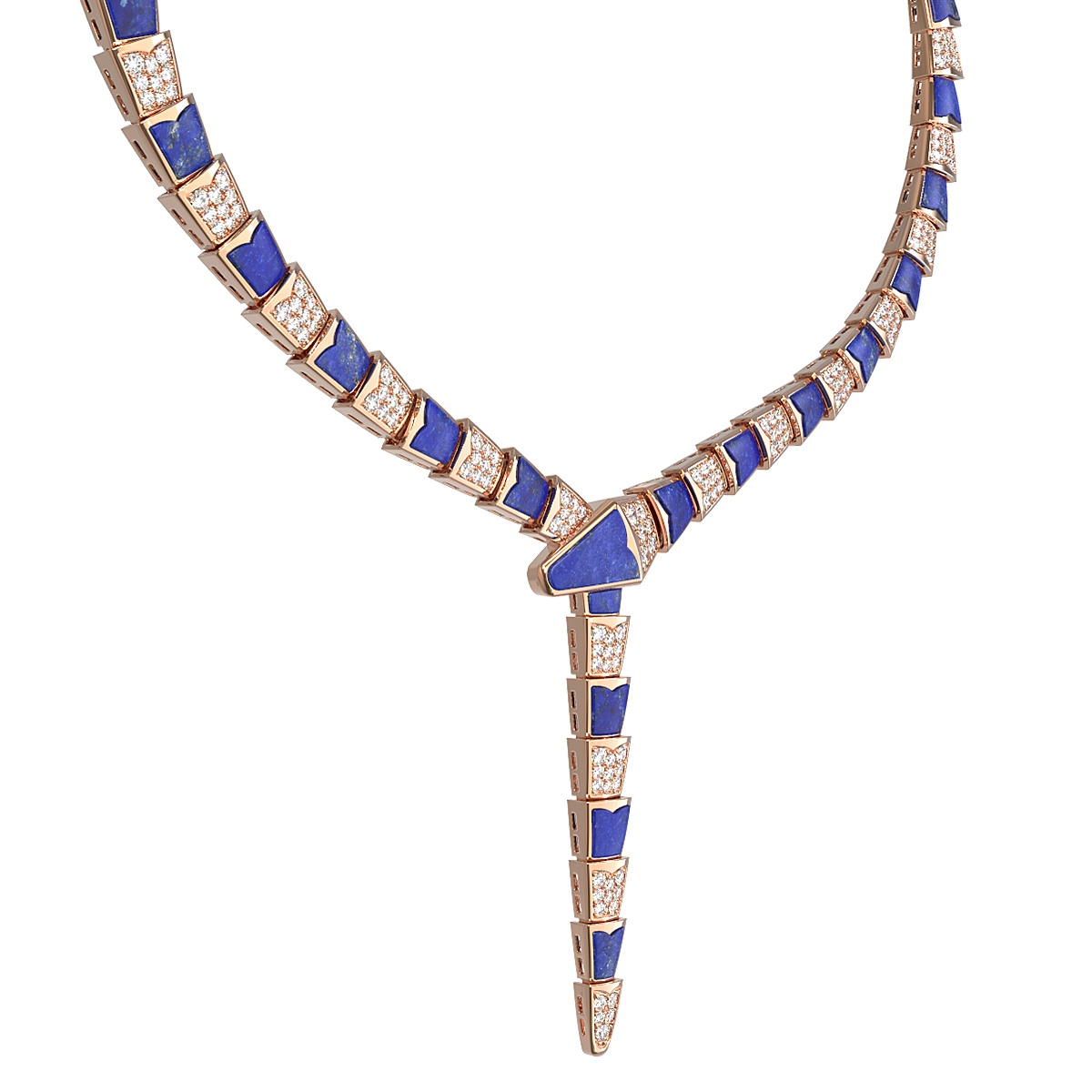 Мастерами была проделана кропотливая работа: конструкция колье декорирована 310 вставками, среди которых сочетаются благородный синий лазурит и сверкающие белые бриллианты круглой огранки. Глубокий синий цвет лазурита гармонично контрастирует с теплым блеском красного золота, а сияние камней добавляет изделию выразительности и роскоши. Данное украшение универсально — оно создано как для женщин, так и для мужчин, предпочитающих эксклюзивные ювелирные аксессуары.