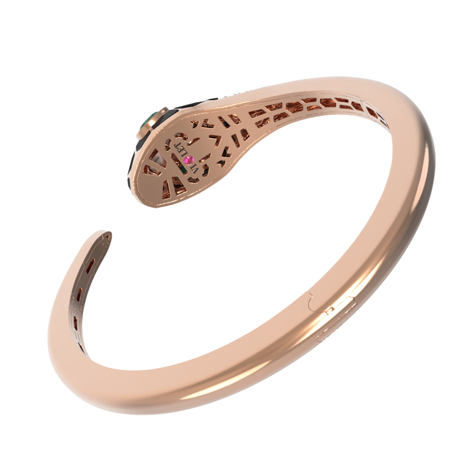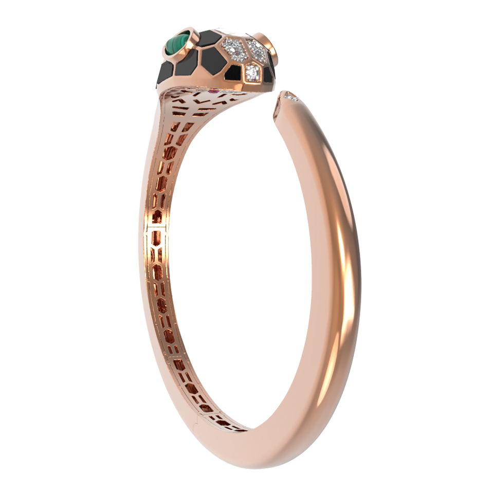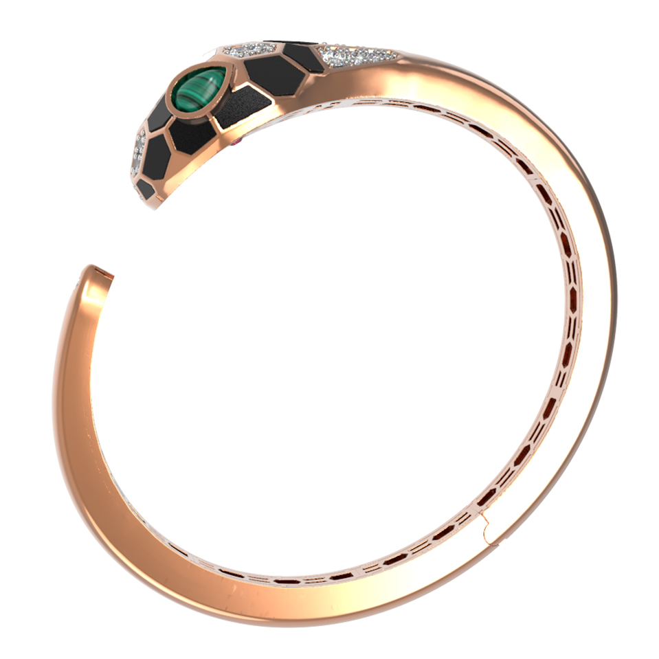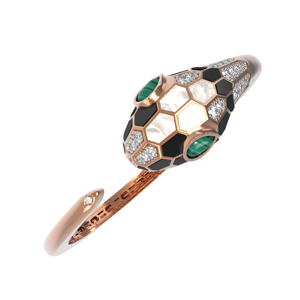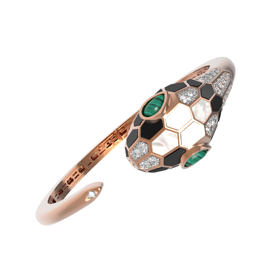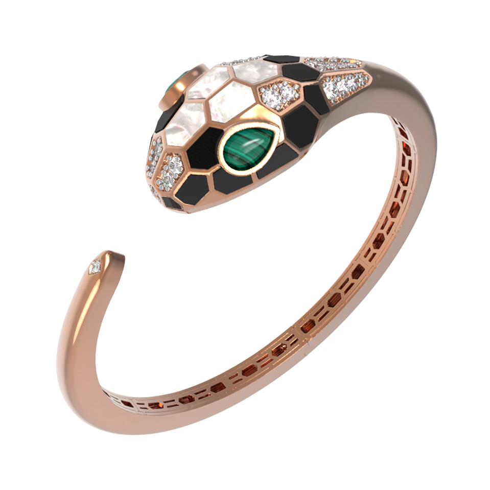 Браслет из красного золота 585 пробы c бриллиантами, рубином, ониксом, малахитом и перламутром