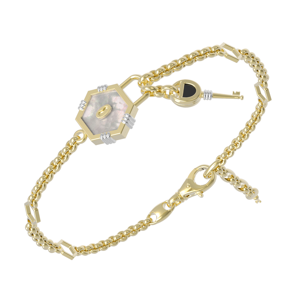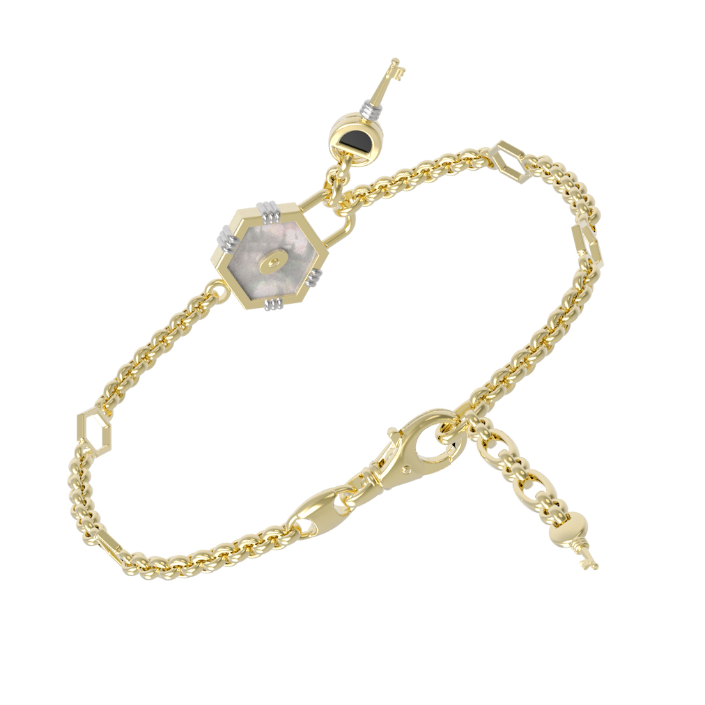 Браслет из лимонного золота 585 пробы c ониксом и перламутром