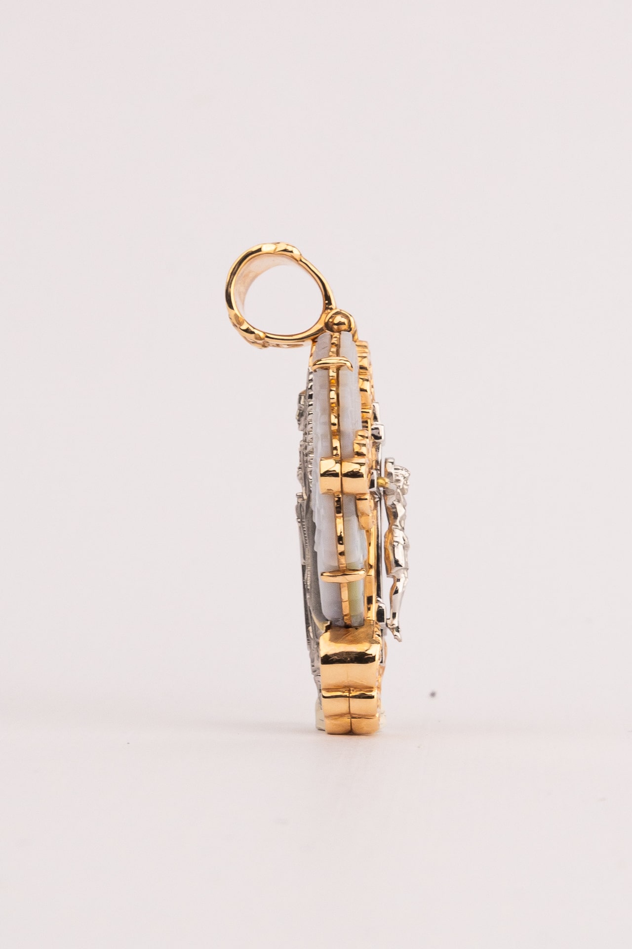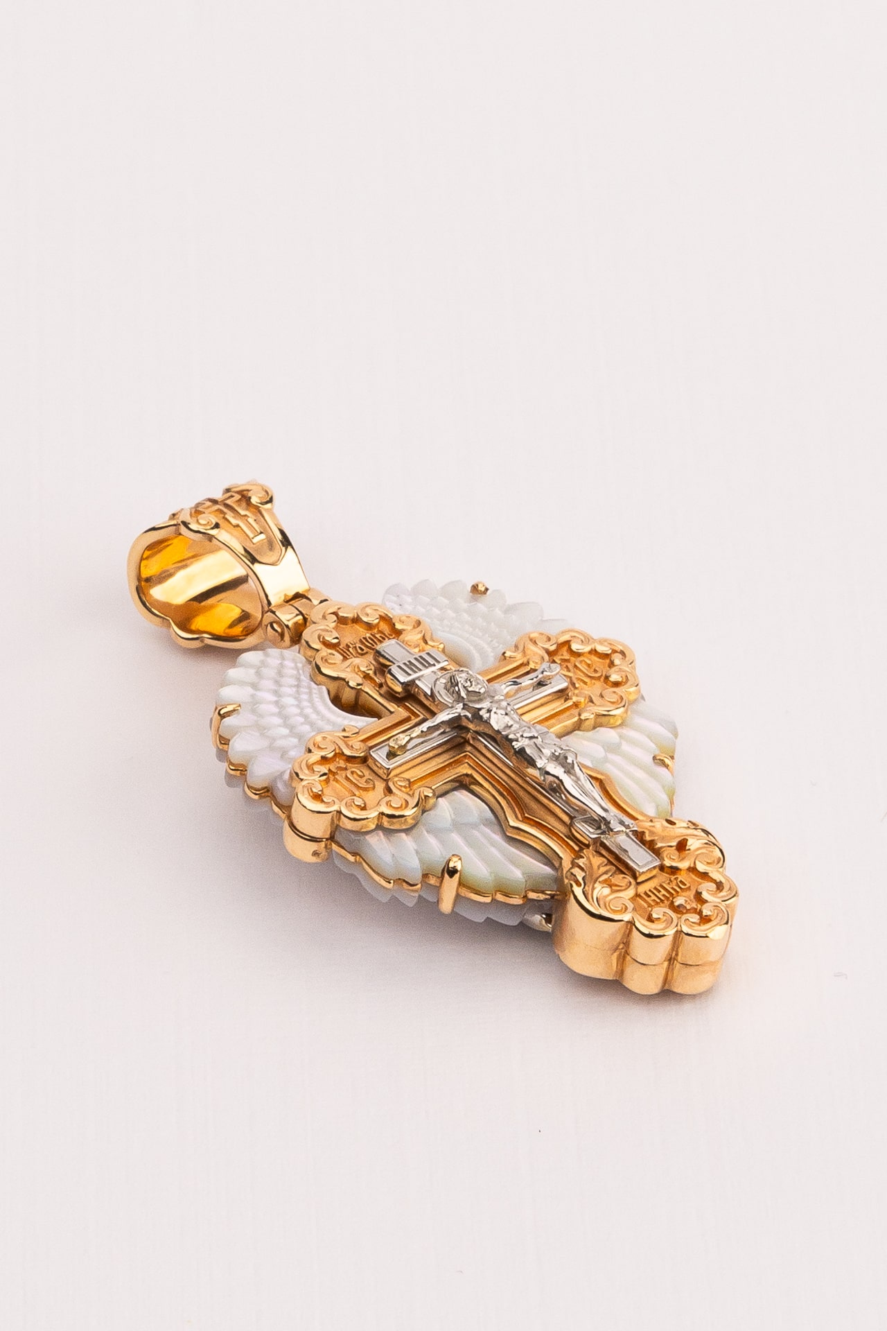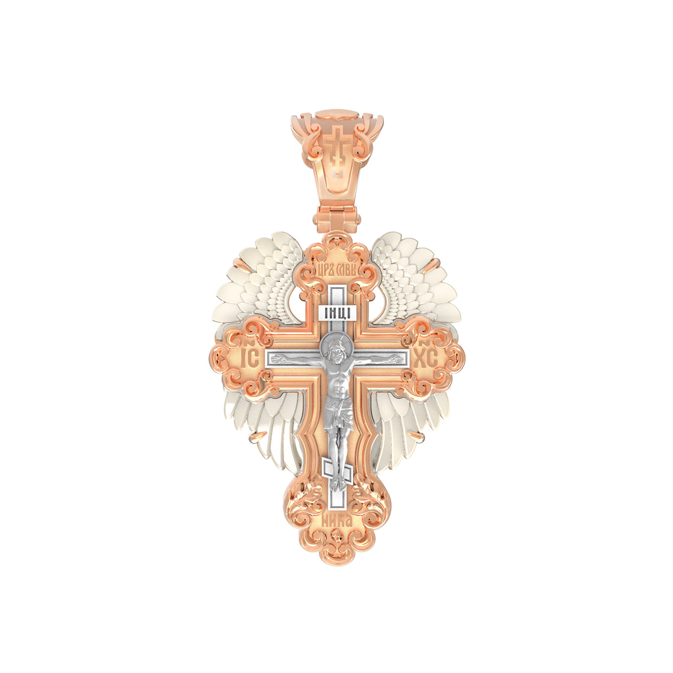 На лицевой стороне креста изображено Распятие Господа и Спасителя нашего Иисуса Христа. В Голгофе сокрыта непостижимая тайна бесконечной правды и любви Бога. Крест стал символом победы добра над злом, жизни над смертью, напоминанием бесконечной Божьей любви, предметом радости. Воплотившийся Сын Божий Своею кровью освятил крест и сделал его проводником Своей благодати, источником освящения верующих. Господь сказал: кто хочет идти за Мною, отвергнись себя, и возьми крест свой, и следуй за Мною. (Мк. 8: 34). Над Распятием помещена надпись «Царь Славы». Ниже расположена перекладина которая символизирует титло — табличку, на которой, согласно Евангелию, было начертано: Иисус Назорей Царь Иудейский (IНЦI). Надпись «IС ХС» означает Иисус Христос, помещается на разных сторонах поперечной перекладины креста. В нижней части креста помещено слово «НИКА», что означает «победитель». Крест стоит на горе камней, символизирующих Голгофу. В ее основании различается череп — это голова Адама.