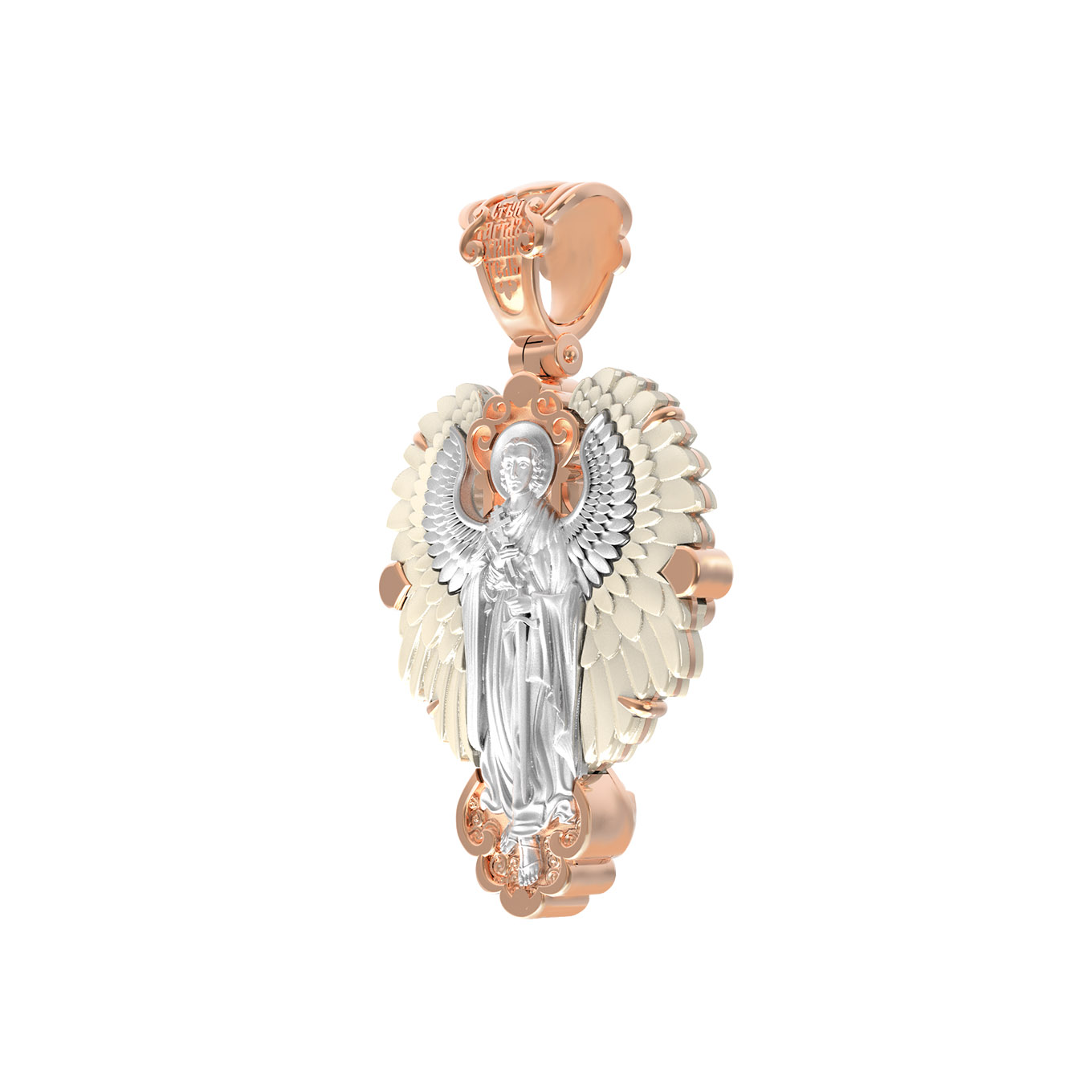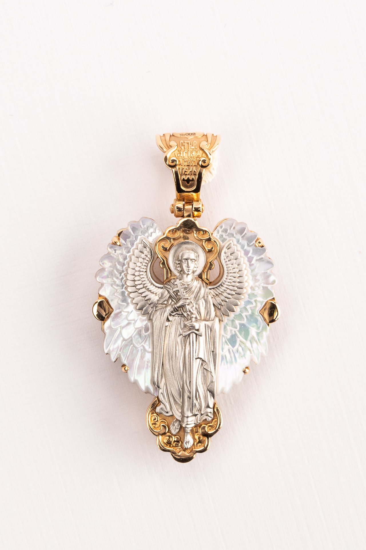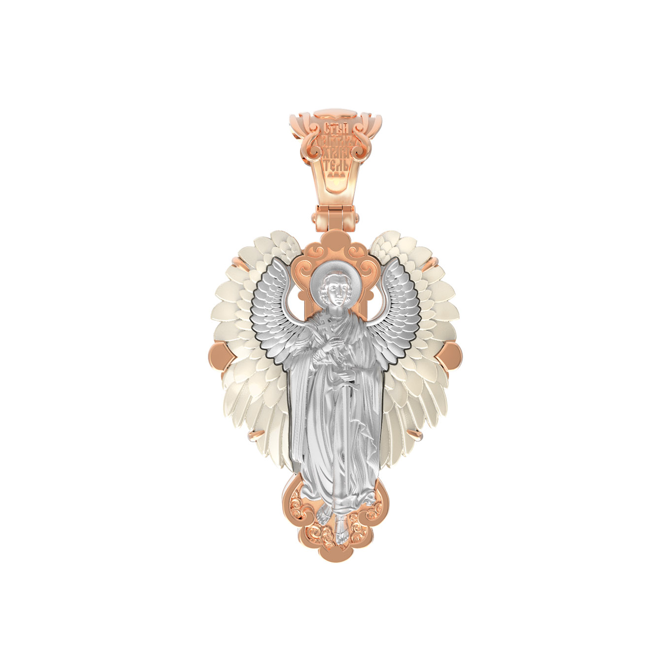 На оборотной стороне образка изображен Святой Ангел-Хранитель в виде прекрасного юноши держащего в правой руке крест, а в левой — мечь. Ангел-Хранитель — это Ангел приставляемый Богом к человеку при крещении для охраны и помощи в добрых делах. Он невидимо находится при человеке на протяжении всей его жизни, если человек сохраняет в себе любовь к Богу и истинную веру перед Ним. Ангел-Xранитель делают для нас все, что служит к истинному нашему благу и спасению. Невидимо пребывая при нас постоянно, он, руководствуя нас ко спасению, наставляет нас на все доброе и полезное, возносит наши молитвы к Богу, охраняют и защищают нас от врагов видимых и невидимых и ходатайствует за нас пред Богом.