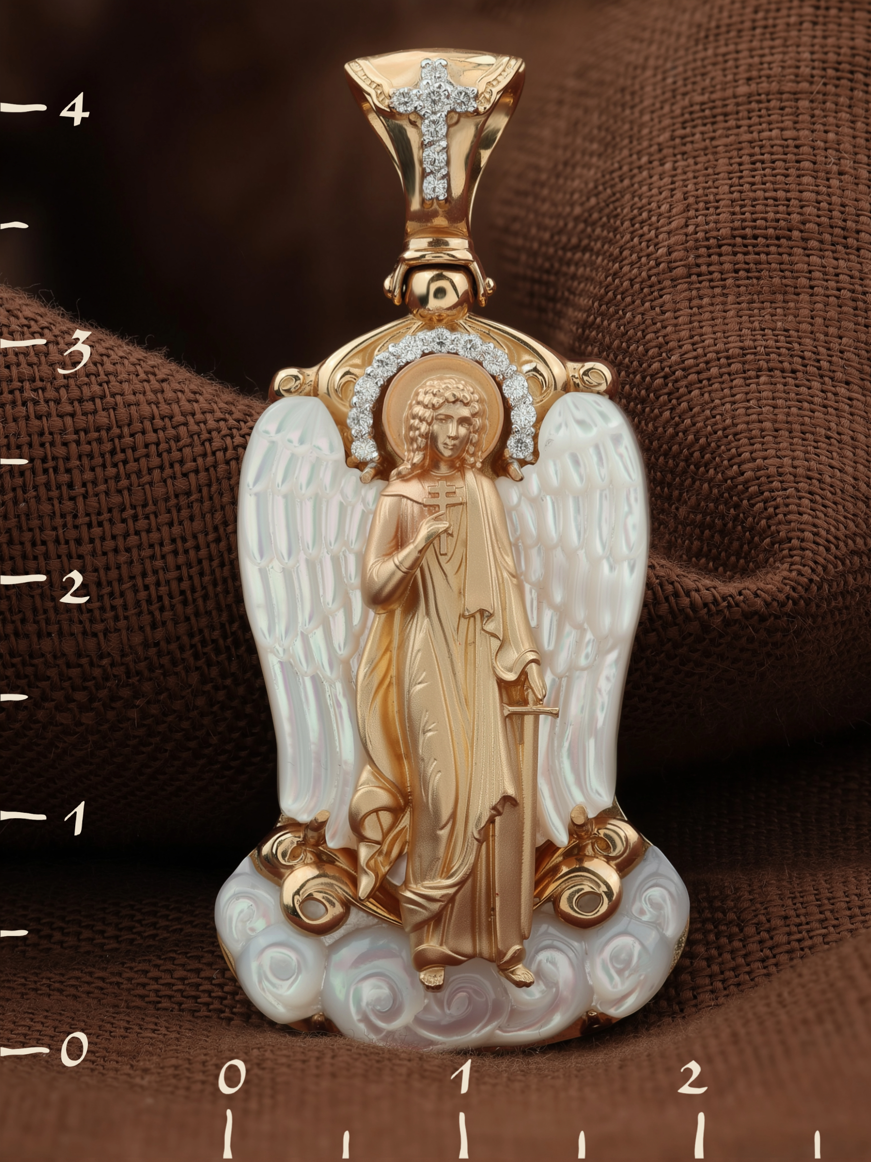Нательная икона из красного золота 585 пробы c бриллиантами и перламутром