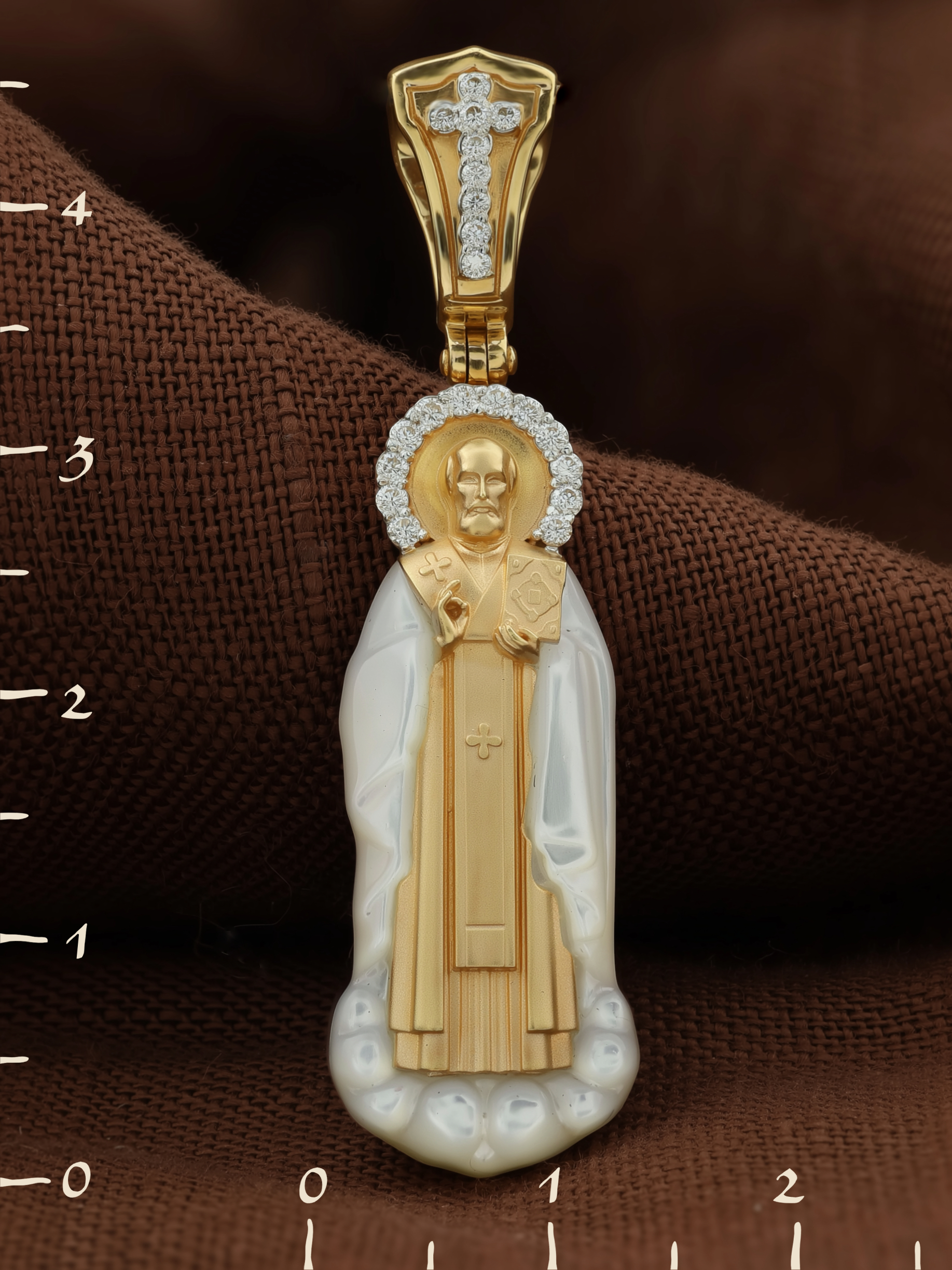 Нательная икона из лимонного золота 585 пробы c бриллиантами и перламутром