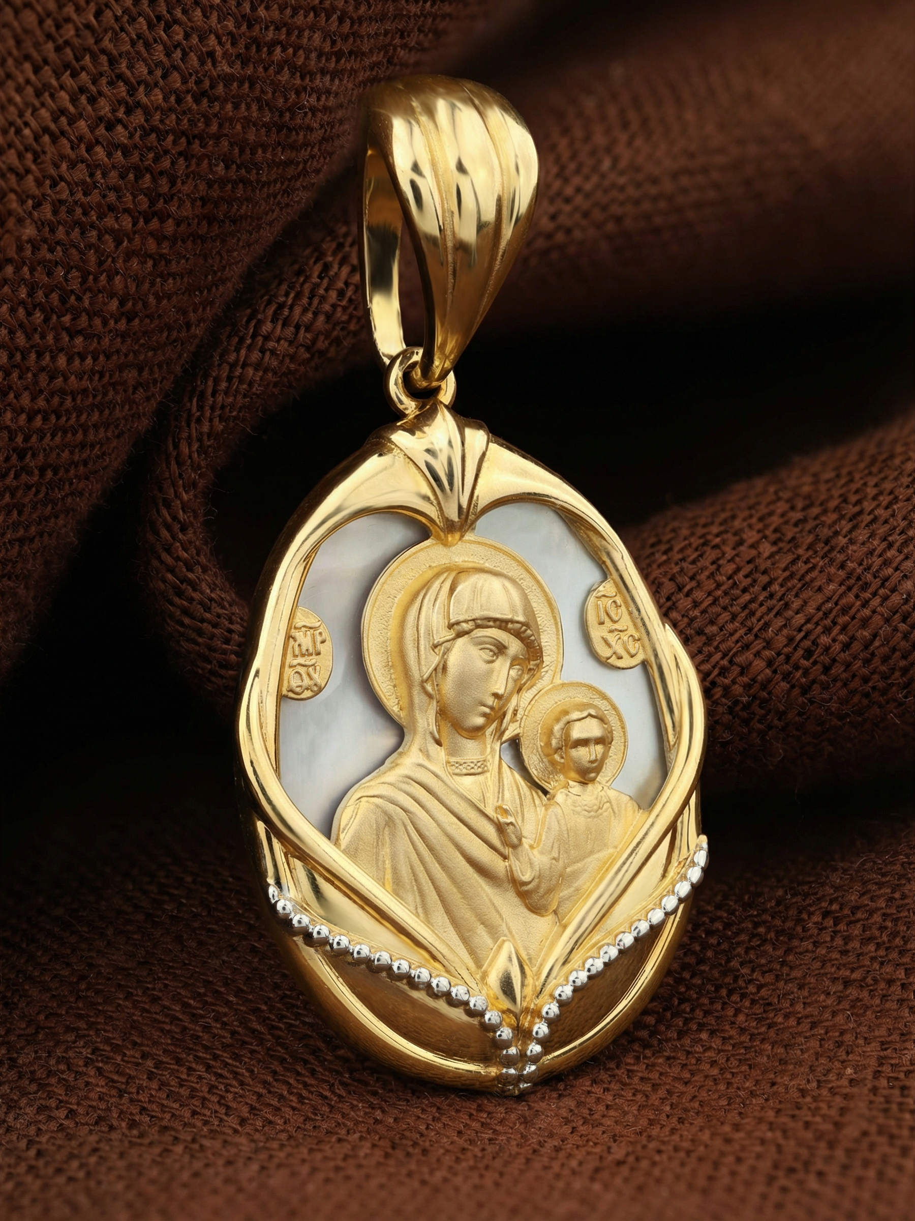 На лицевой стороне образка изображена Казанская икона Божией Матери. Пресвятая Богородица — милосердная заступница, просительница за нас перед Богом. Ее благодатная помощь изливается на нас по молитвам у ее чудотворных икон. Казанская икона явилась в 1579 году в Казани, вскоре после взятия Казанского царства у татар Иоанном Грозным. Этот образ Богородицы не раз сопровождал русский народ в бедствиях. Икона Божией Матери Казанская вдохновляла русских ратников в период Смутного времени при освобождении Москвы от поляков. Перед Казанской иконой в 1709 году, накануне Полтавской победы, император Петр I молился о даровании победы русскому войску. В 1812 году накануне отъезда в действующую армию перед чудотворной иконой Божией Матери молился князь Михаил Кутузов. Не только государственным мужам и дружинам указывала путь икона — по доброй традиции именно этой иконой благословляют на брак молодых родители, длинным списком чудес сопровождается этот образ Богоматери — один из самых любимых на Руси. Существует множество древних списков с этой удивительной иконы.