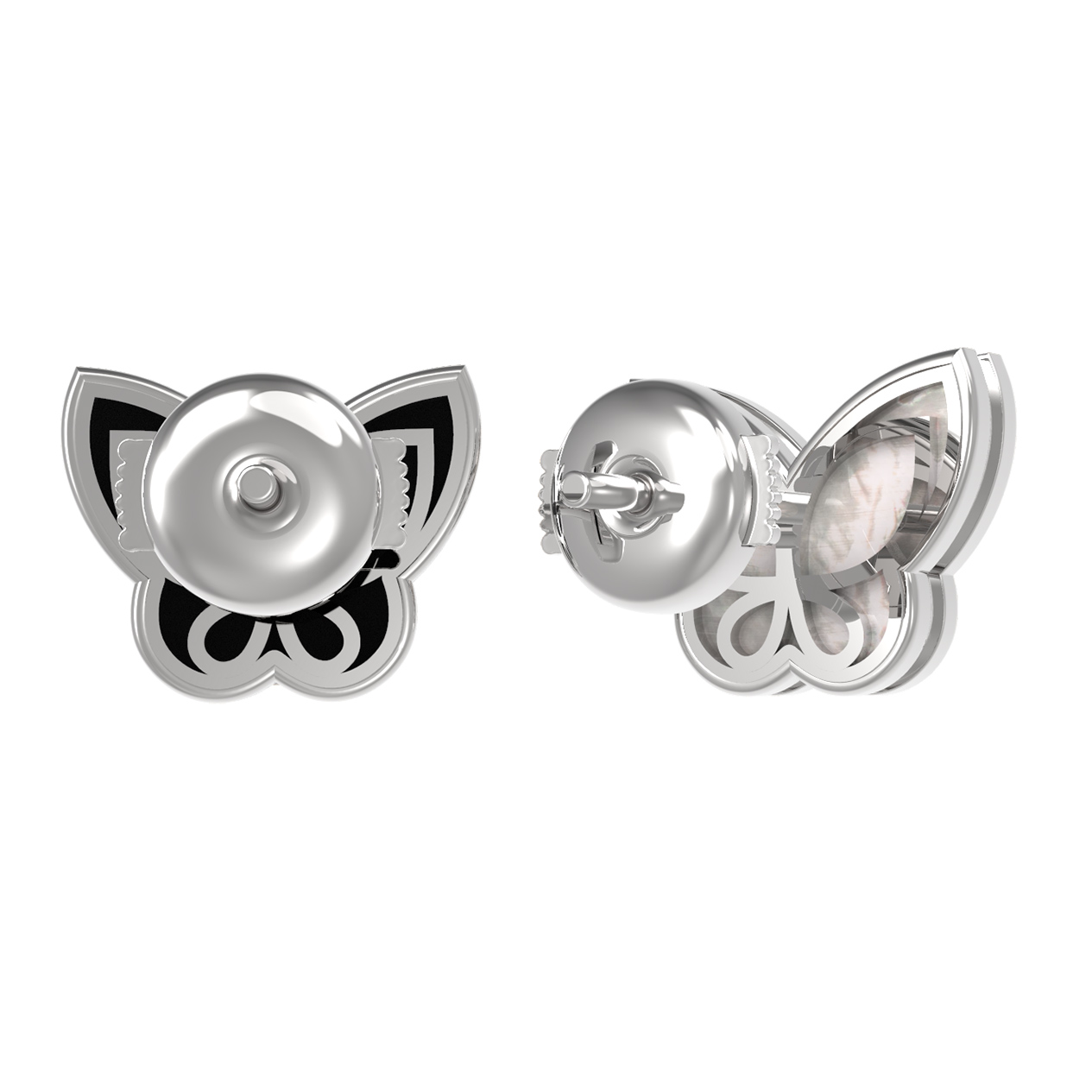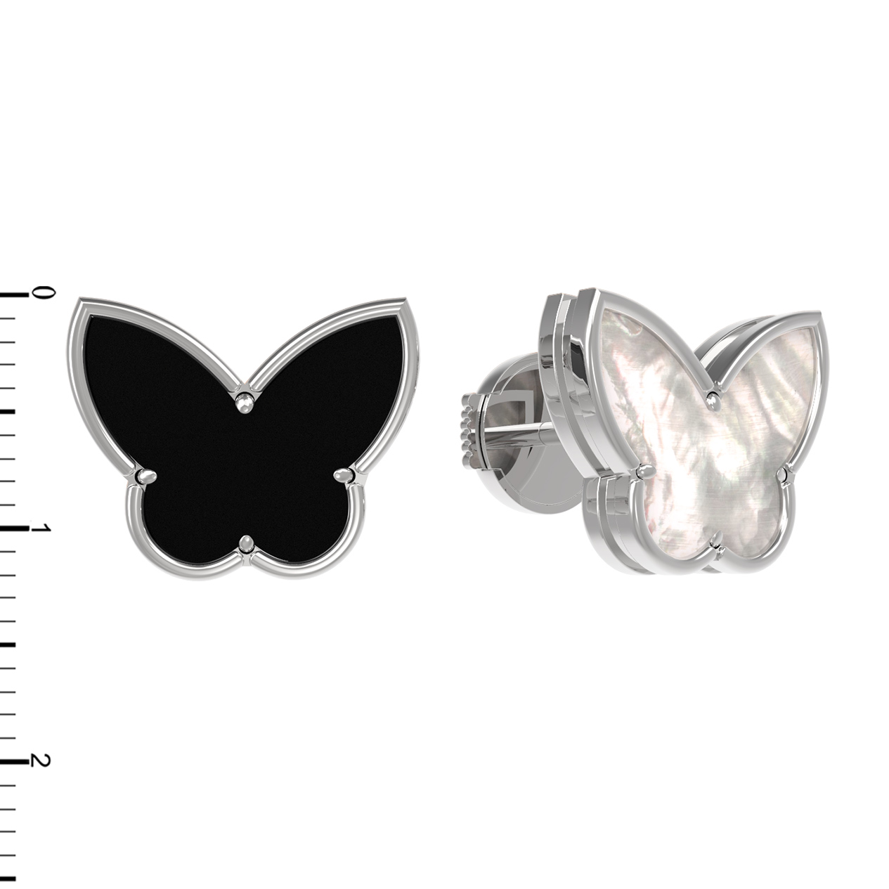 Серьги из белого золота 585 пробы c ониксом и перламутром