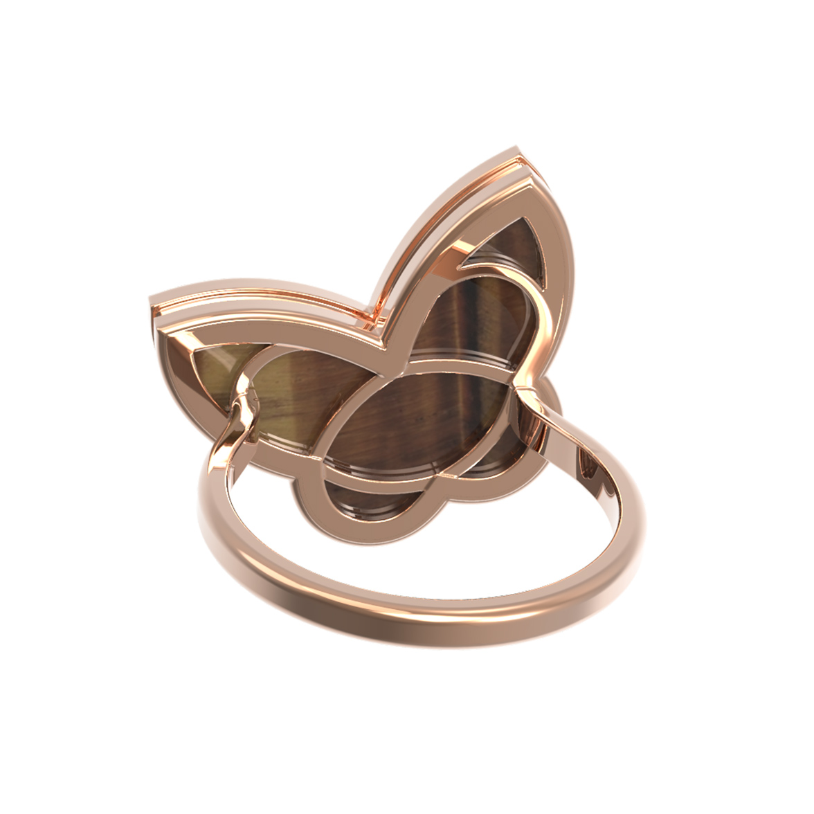Кольцо из золота с тигровым глазом из коллекции De Luxe — Клевер весна воплощает в себе лаконичность и природную эстетику. Это изысканное украшение выполнено из качественного красного золота 585 пробы, чей теплый оттенок идеально гармонирует с глубоким, переливчатым блеском натурального камня. Дизайн изделия, вдохновленный формой клевера, придает украшению особый шарм и узнаваемый облик.