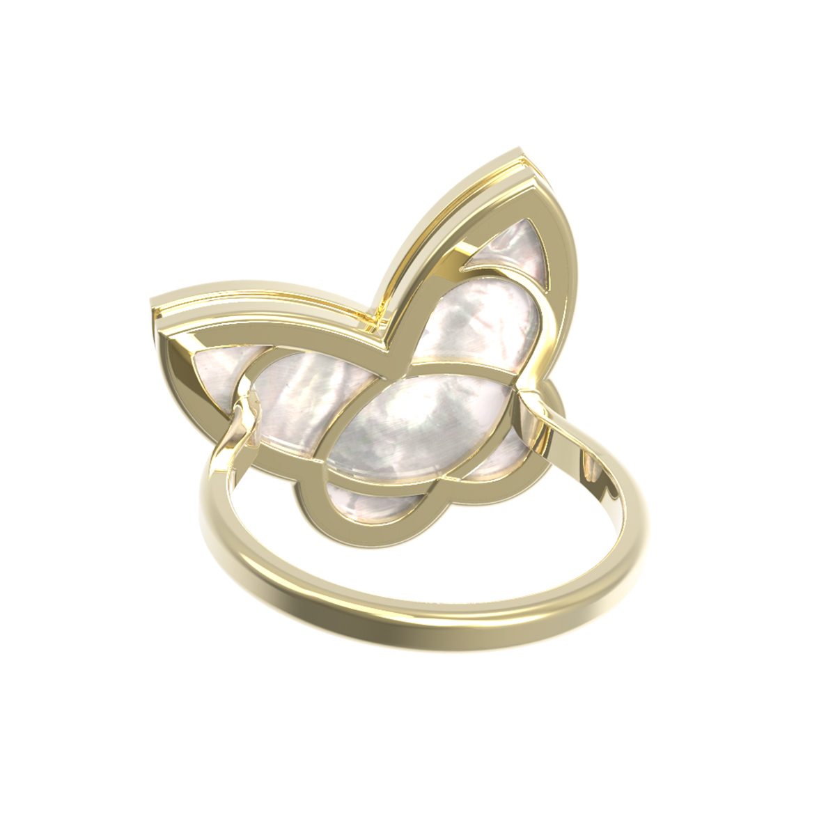 Кольцо из лимонного золота с перламутром станет изысканным акцентом вашего образа, подчеркивая утонченность и безупречный вкус. Ювелирное изделие выполнено из высококачественного лимонного золота 585 пробы, которое придает украшению благородный теплый оттенок. Дизайн изделия вдохновлен природными мотивами: декоративный элемент в форме клевера-бабочки гармонично дополнен нежной вставкой из перламутра с характерным переливающимся сиянием.