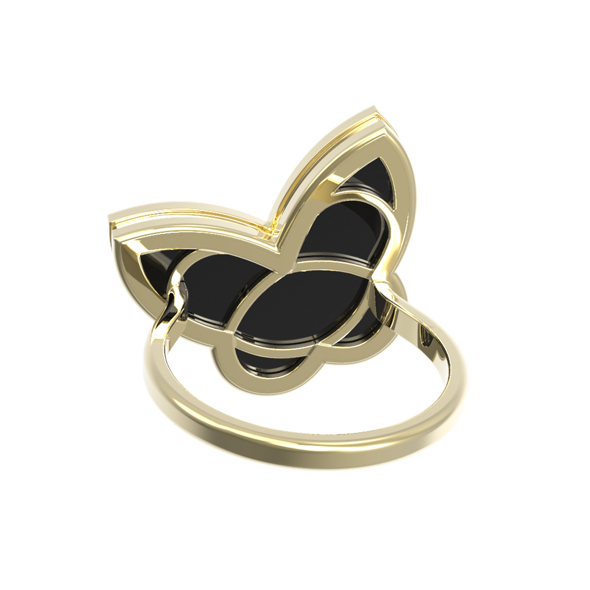 Элегантное кольцо из лимонного золота 585 пробы станет изысканным акцентом вашего образа. Дизайн изделия вдохновлен природными мотивами и выполнен в форме узнаваемого клевера, который придает украшению особую символичность и неповторимый шарм. Глубокий, насыщенный черный цвет оникса эффектно контрастирует с благородным сиянием лимонного металла, создавая гармоничное и притягательное сочетание. В центре композиции расположена одна вставка из оникса, подчеркивающая статусность и безупречный вкус владельца.