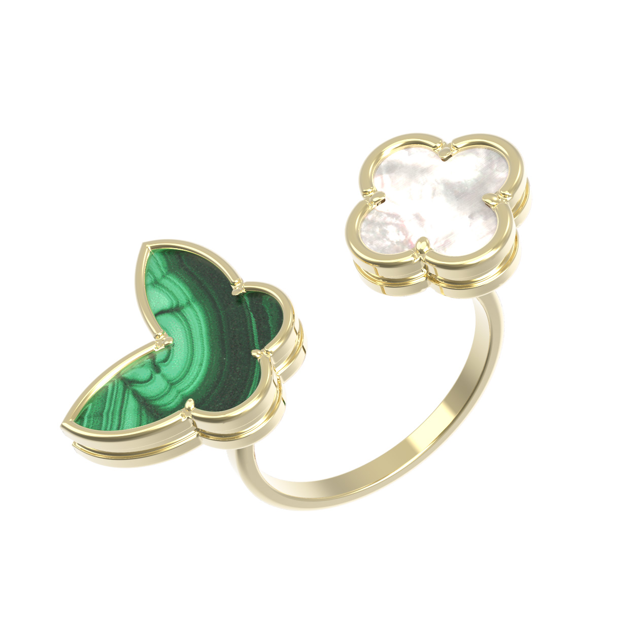 Кольцо из лимонного золота c малахитом и перламутром
