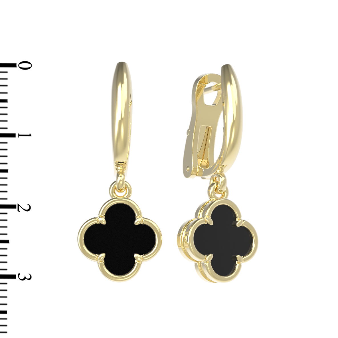 Элегантные серьги из коллекции De Luxe — Клевер весна станут безупречным дополнением вашего образа, подчеркивая статус и тонкий вкус владельца. Ювелирное изделие выполнено из лимонного золота 585 пробы, чей благородный оттенок гармонично дополняет глубокий черный цвет вставок. Две вставки из оникса имеют узнаваемый и символичный дизайн в виде клевера, который придает украшению особое очарование и эстетическую выразительность.