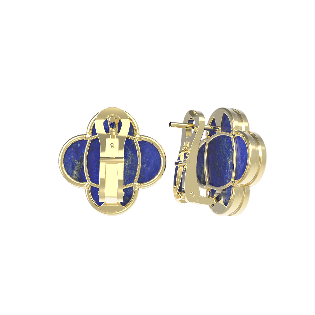 Элегантные и выразительные, эти серьги станут воплощением утонченного вкуса в вашем ювелирном гардеробе. Изделие выполнено в знаковом дизайне клевер, который давно стал символом удачи и изящества. Глубокий, насыщенный синий цвет вставок из натурального лазурита притягивает взгляд, создавая роскошный контраст с благородным блеском металла. Для создания украшения было использовано лимонное золото 585 пробы — материал, который подчеркивает теплоту и эксклюзивность каждой детали.