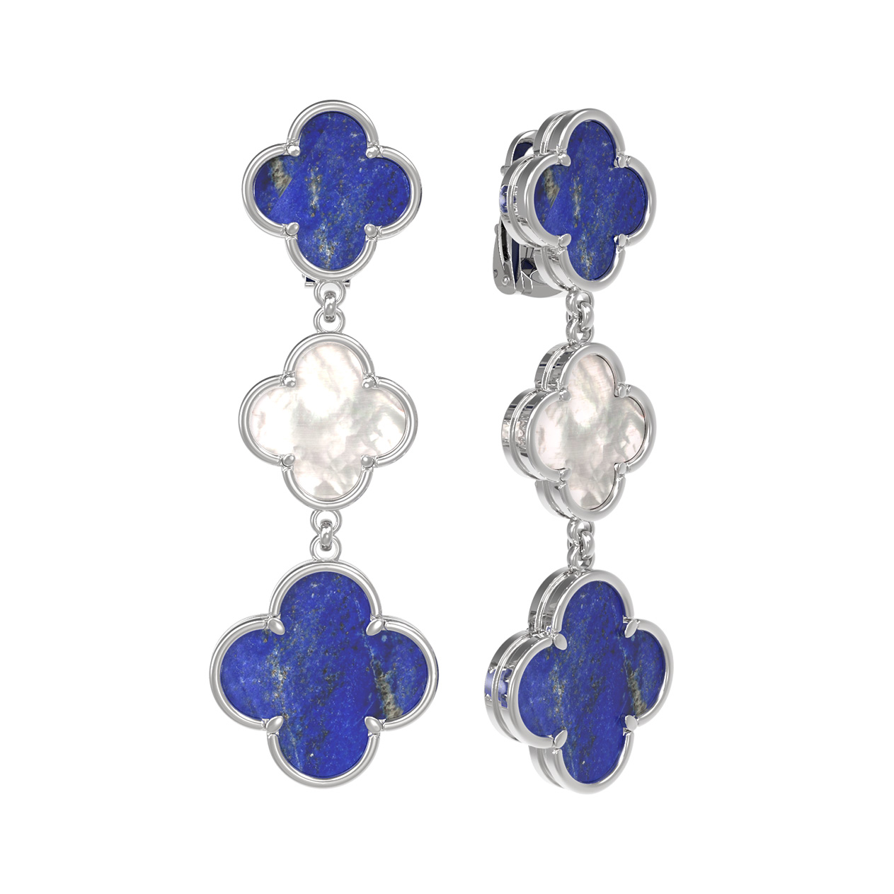 Серьги из белого золота 585 пробы c лазуритом и перламутром