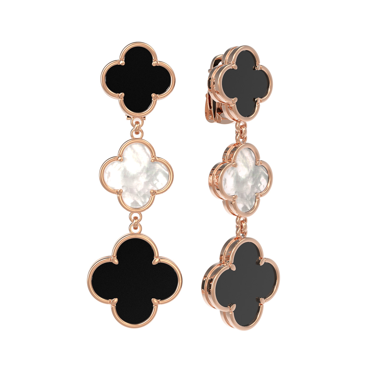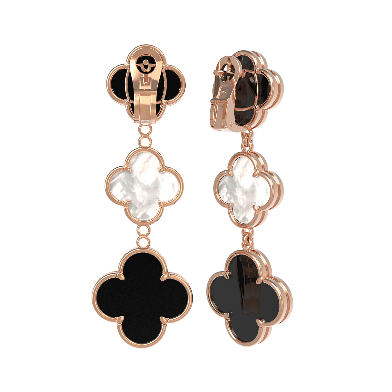 Изделие представляет собой изящную композицию из четырех вставок, которые эффектно чередуются, создавая динамичный образ. Красное золото теплого оттенка подчеркивает насыщенный цвет оникса и мягкое сияние перламутра. Серьги обладают универсальной эстетикой, поэтому отлично подходят как для женщин, так и для мужчин, предпочитающих статусные и лаконичные аксессуары. Надежный замок обеспечивает комфортную посадку, позволяя носить украшение в течение всего дня.