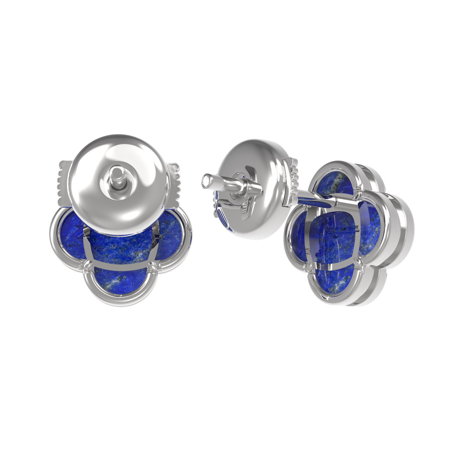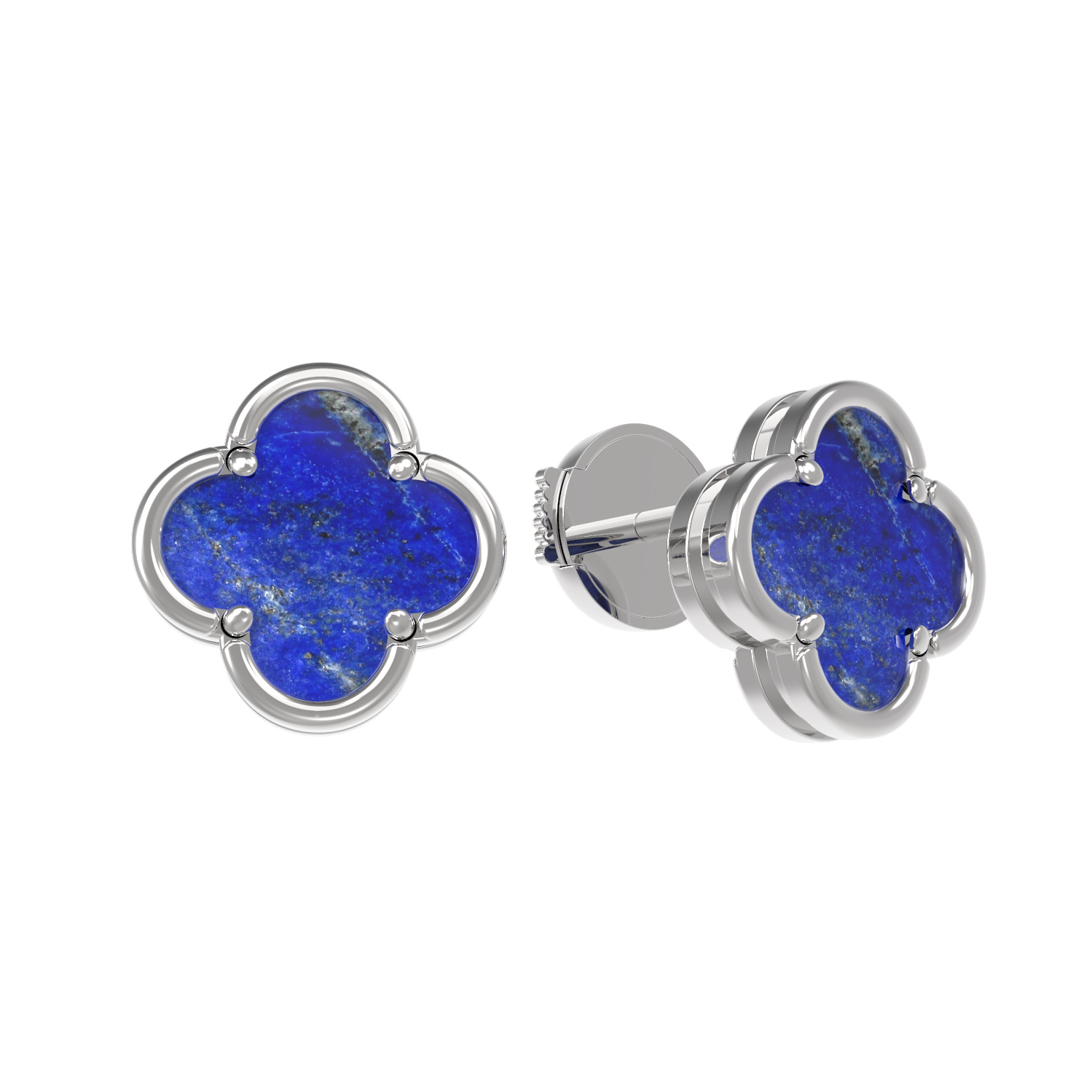 Элегантные серьги из белого золота 585 пробы — это воплощение утонченности и лаконичного стиля. Дизайн в форме клевера делает их универсальным аксессуаром, который гармонично дополнит как повседневный, так и вечерний образ. Глубокий синий цвет вставок из натурального лазурита приковывает взгляд, создавая изысканный контраст с холодным блеском драгоценного металла. Каждая пара украшена двумя вставками, что обеспечивает симметрию и безупречный внешний вид.