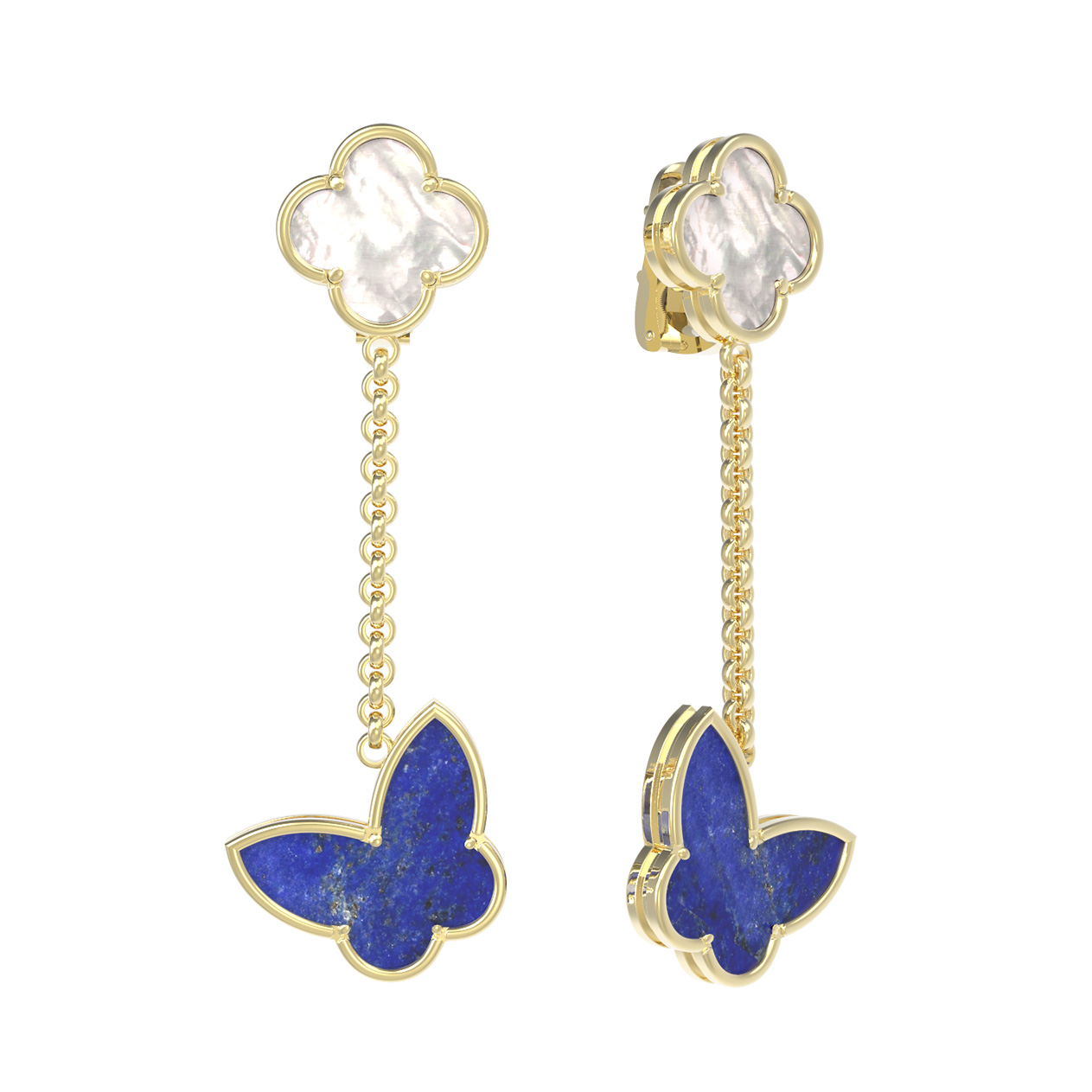 Серьги из лимонного золота 585 пробы c лазуритом и перламутром