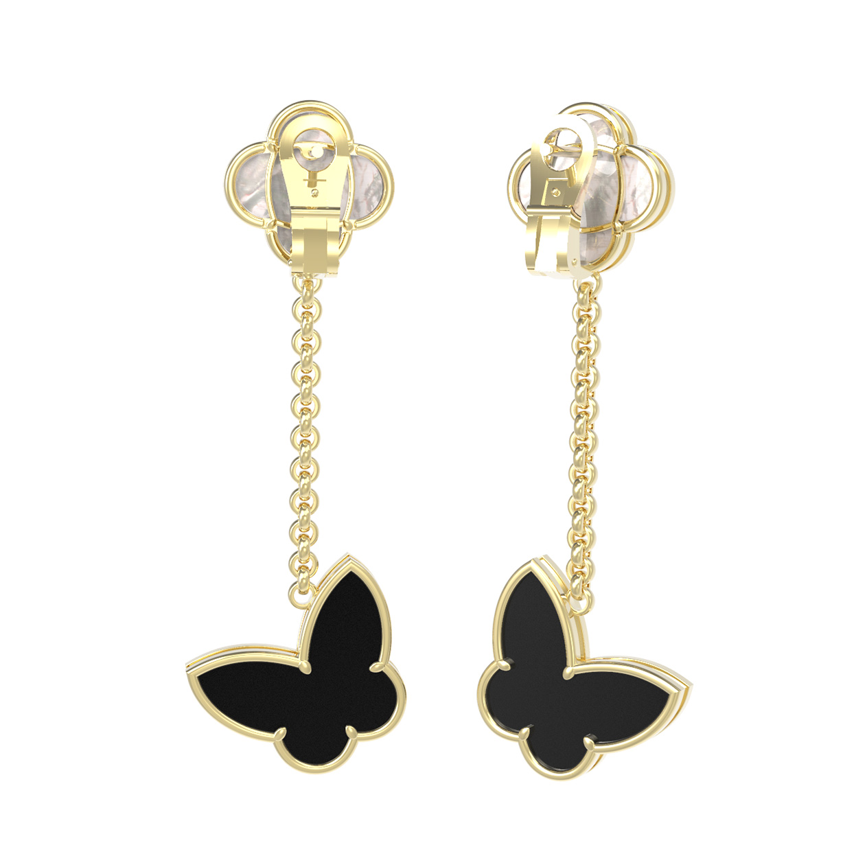 Серьги из лимонного золота 585 пробы c ониксом и перламутром