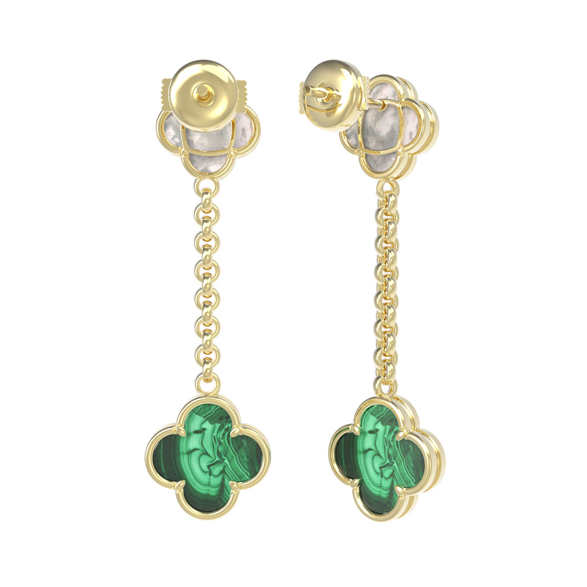 Серьги идеально сочетаются с другими украшениями бренда, позволяя формировать элегантные комплекты для повседневных выходов или торжественных мероприятий. Каждая деталь, от теплого блеска лимонного металла до игры света на перламутровой и малахитовой поверхности, свидетельствует о высоком качестве исполнения. Добавьте в свою ювелирную коллекцию украшение, которое никогда не выйдет из моды.