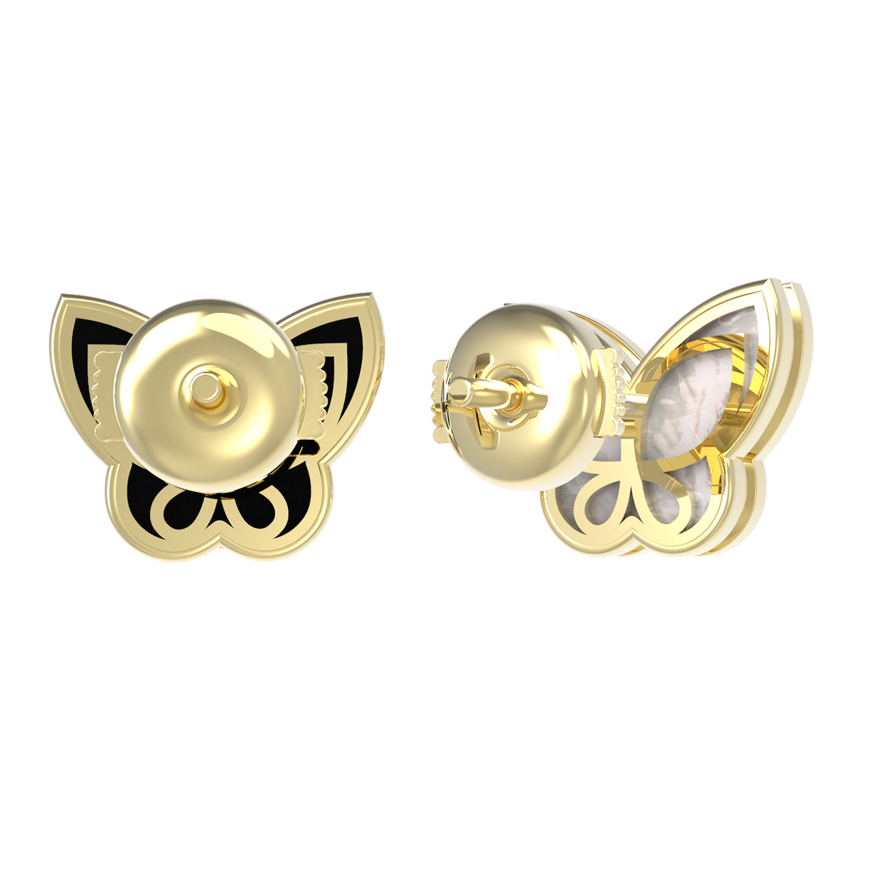 Серьги из лимонного золота c ониксом и перламутром