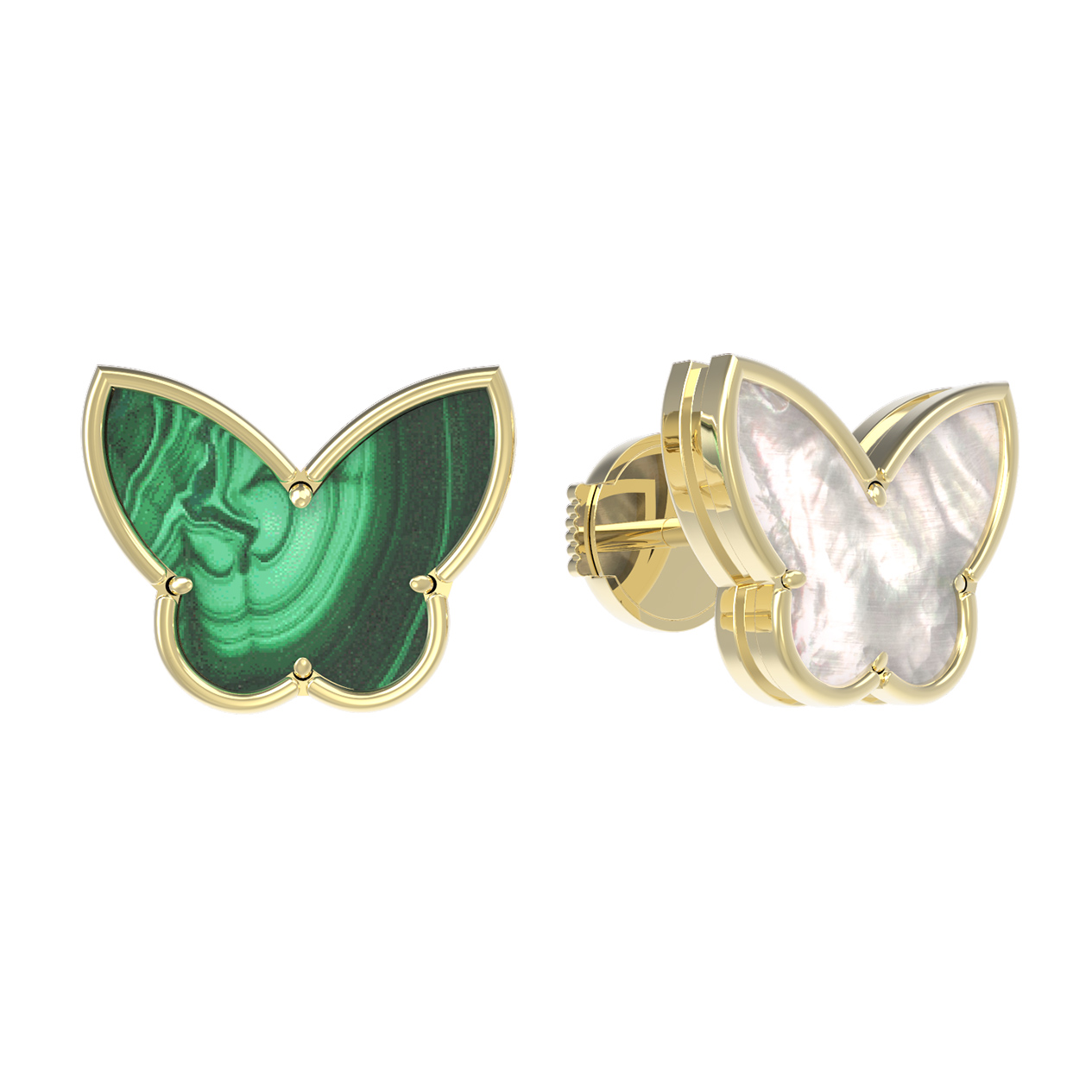 Серьги из лимонного золота 585 пробы c малахитом и перламутром