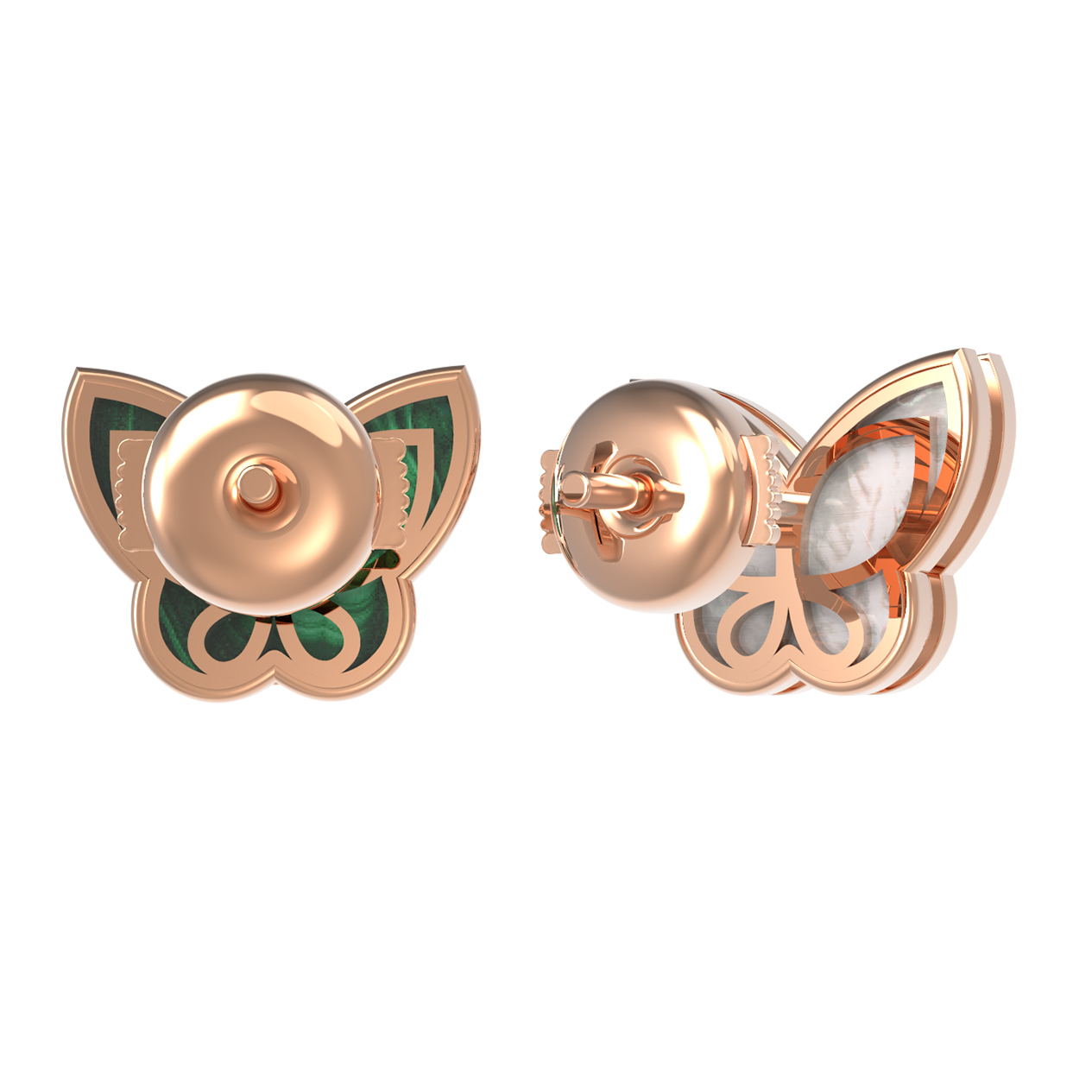 Откройте для себя воплощение изящества с этими серьгами из золота, которые станут ключевым акцентом вашего образа. Ювелирное изделие выполнено из красного золота 585 пробы, чей теплый оттенок идеально гармонирует с природной красотой камней. Дизайн украшения вдохновлен эстетикой клевера, однако придает ему особую легкость и воздушность, напоминая о пробуждении природы. Оригинальность модели заключается в контрастном сочетании вставок: насыщенный зеленый малахит с его уникальным природным рисунком соседствует с нежным мерцающим перламутром. Такая игра текстур и оттенков притягивает взгляды и подчеркивает утонченный вкус владелицы.