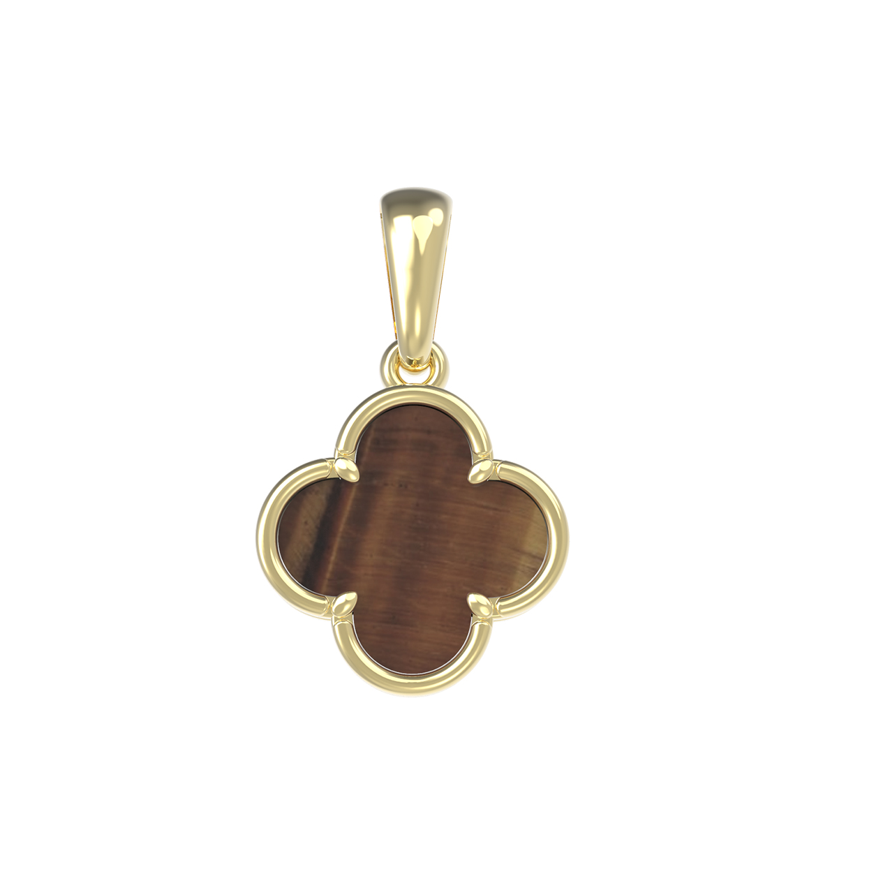 Подвеска из лимонного золота 585 пробы — это изысканное ювелирное украшение, которое станет акцентом вашего образа. Дизайн изделия выполнен в форме нежного клевера, что придает украшению особое очарование и символичность. Центральным элементом композиции является вставка из натурального тигрового глаза. Этот камень насыщенного оранжевого цвета обладает уникальным переливом, который идеально гармонирует с теплым сиянием лимонного золота.
