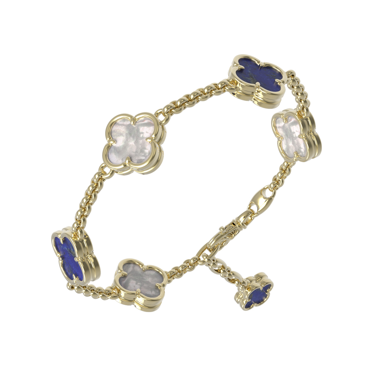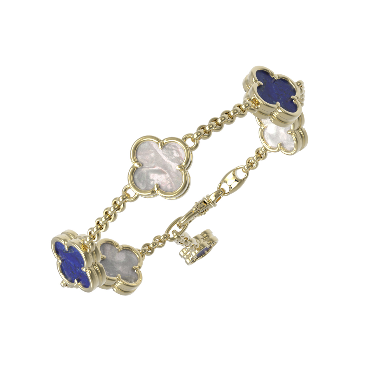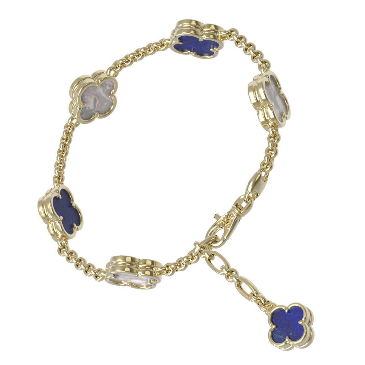 Браслет из лимонного золота 585 пробы c лазуритом и перламутром