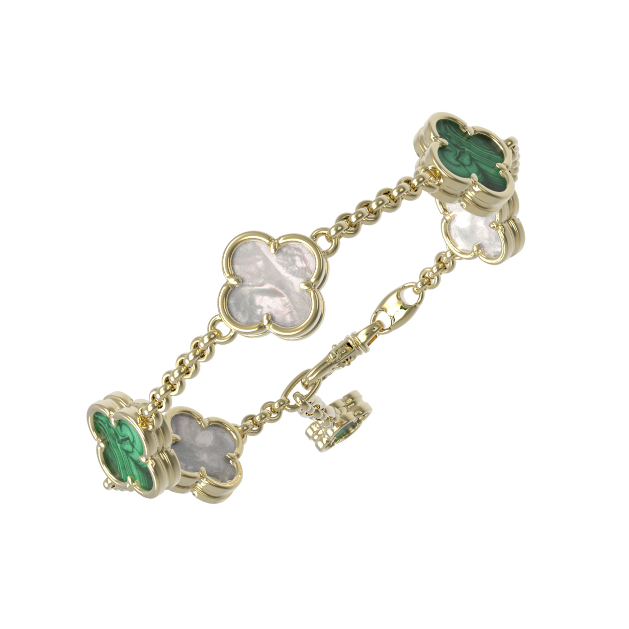 Браслет из лимонного золота 585 пробы c малахитом и перламутром