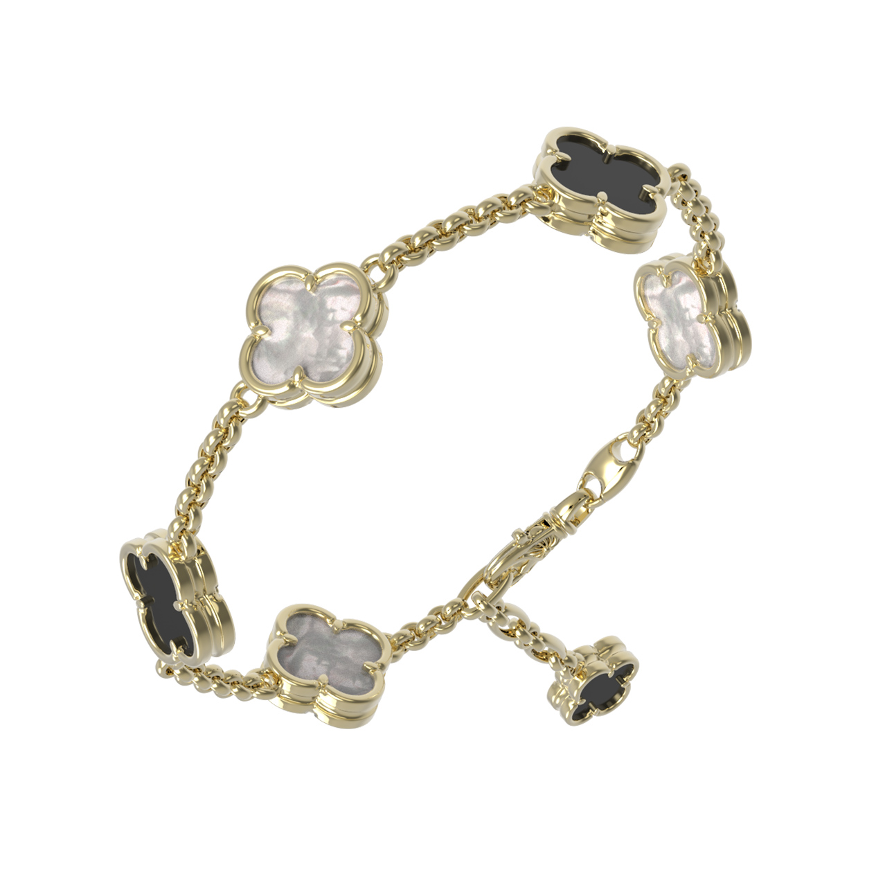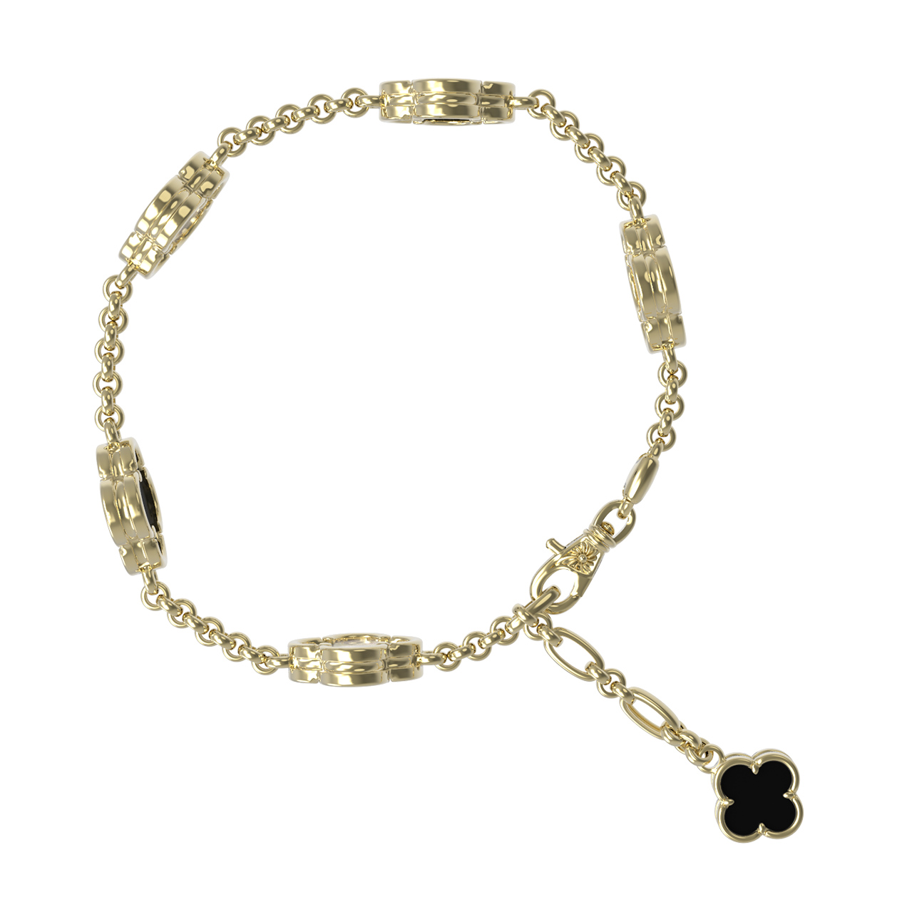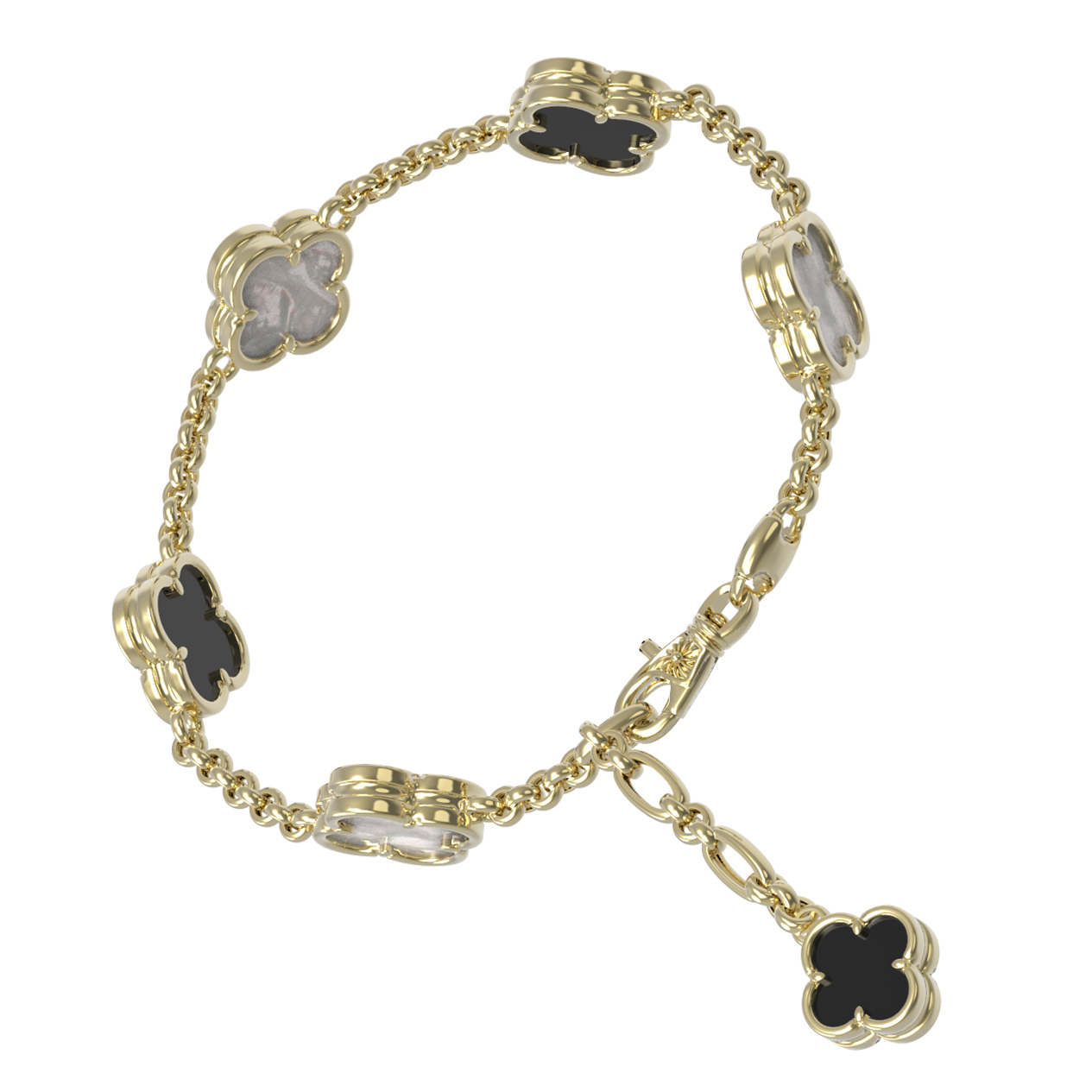 Браслет из лимонного золота 585 пробы c ониксом и перламутром