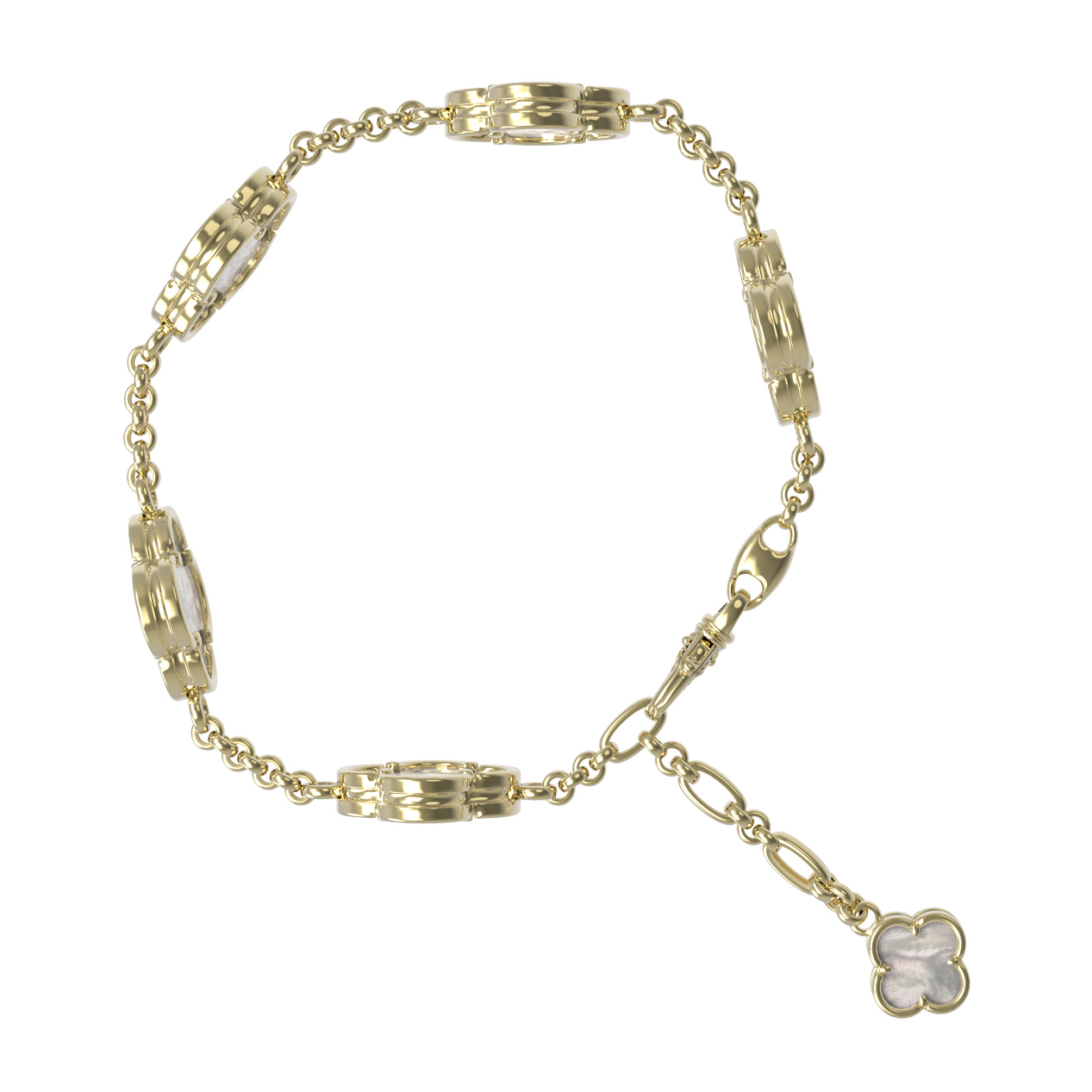 Изысканный браслет из лимонного золота 585 пробы станет утонченным дополнением вашего образа. Это украшение из коллекции De Luxe — Клевер весна выполнено в актуальном дизайне Клевер, который символизирует гармонию и естественную красоту. Мягкое сияние драгоценного металла лимонного оттенка идеально подчеркивает природную глубину вставок из натурального перламутра. Переливы перламутра создают завораживающий эффект, который меняется в зависимости от освещения, придавая аксессуару особый шарм.