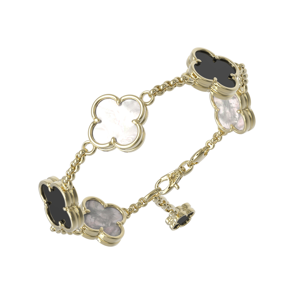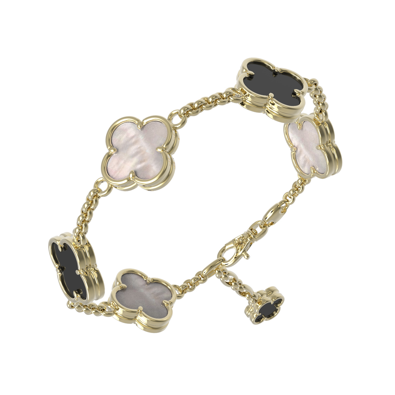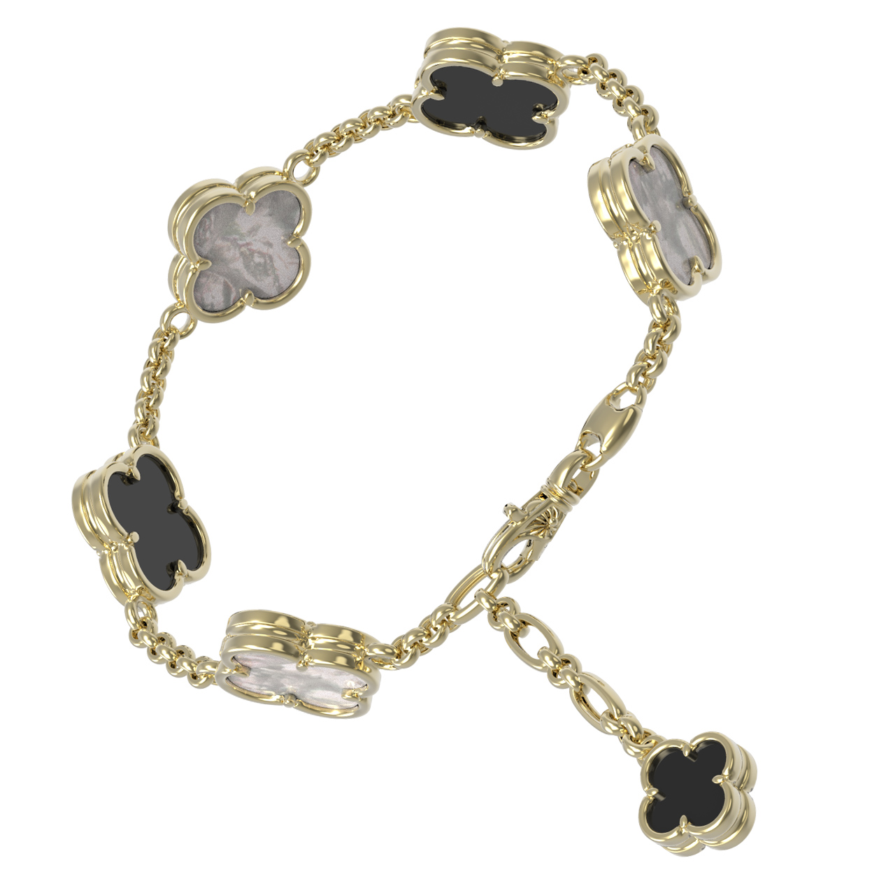 Браслет из лимонного золота 585 пробы c ониксом и перламутром