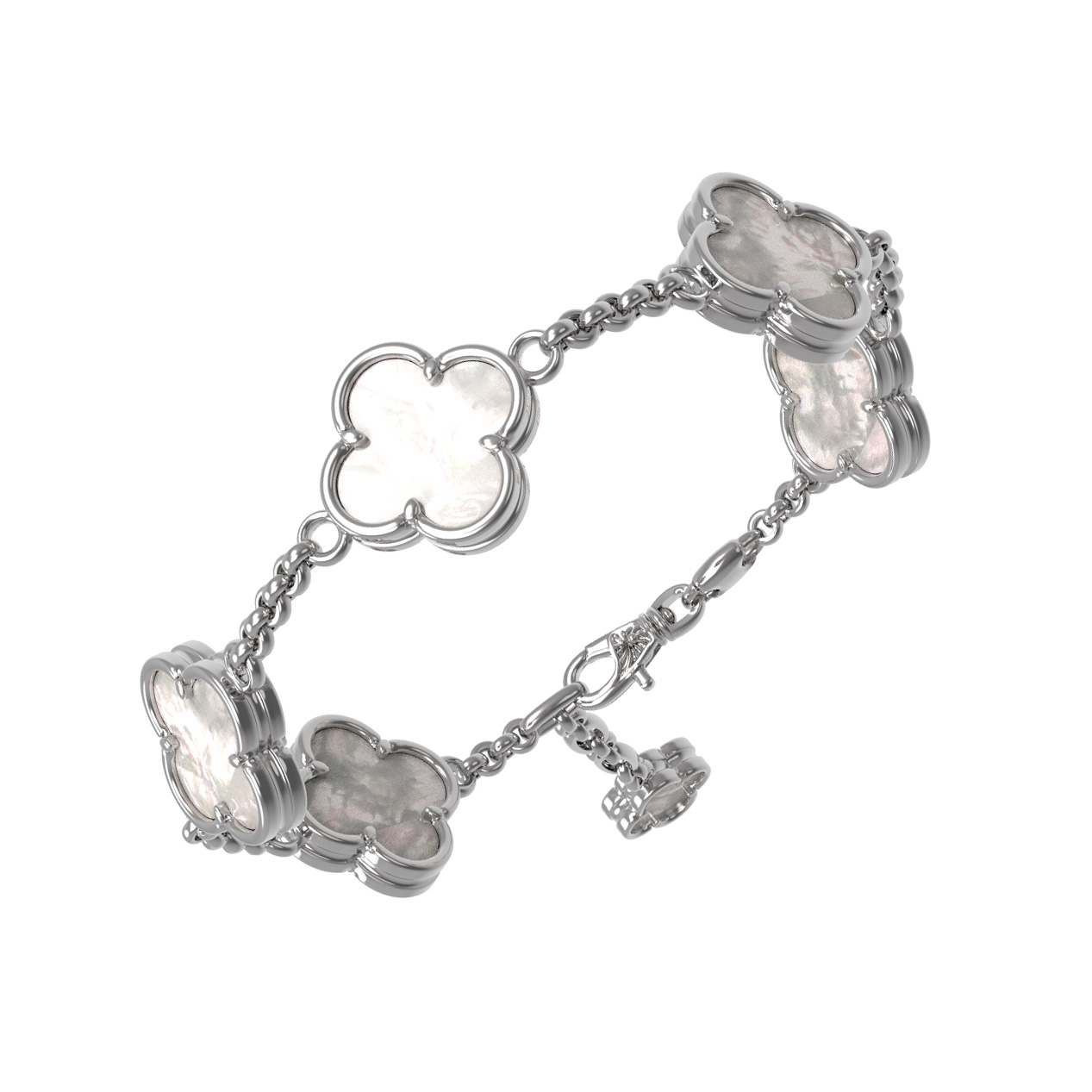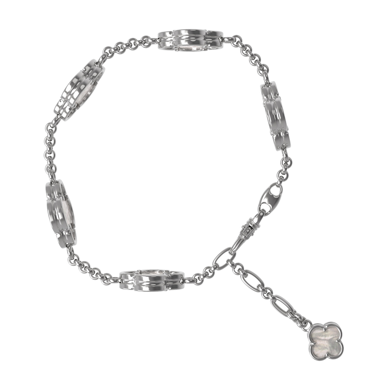Благородный холодный оттенок белого золота идеально сочетается с нежностью перламутра, создавая гармоничную и стильную композицию. Этот браслет одинаково эффектно смотрится как самостоятельный аксессуар, так и в составе комплектов, позволяя вам создавать завершенные ювелирные ансамбли. Качественное исполнение и продуманная конструкция гарантируют комфорт при ежедневной носке, а универсальный дизайн делает его желанным украшением для каждого ценителя высокого ювелирного искусства. Выбирая данное изделие, вы отдаете предпочтение долговечности, красоте и вневременному стилю, который всегда остается актуальным.