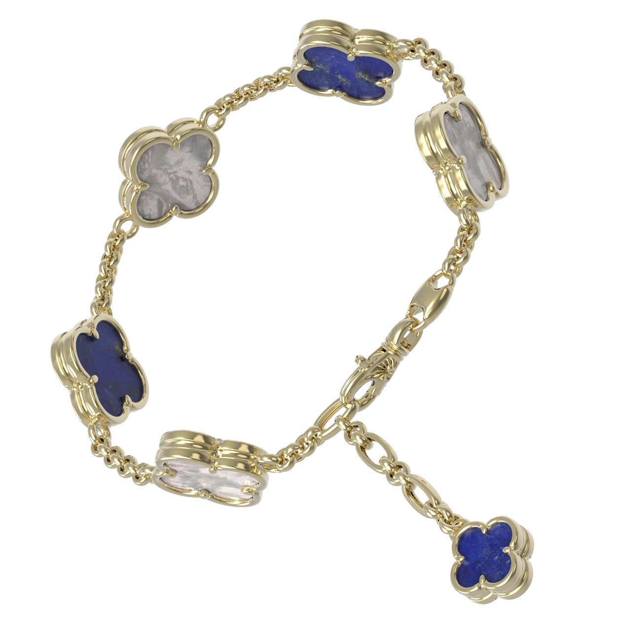 Браслет из лимонного золота 585 пробы c лазуритом и перламутром