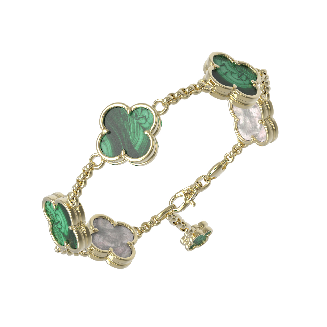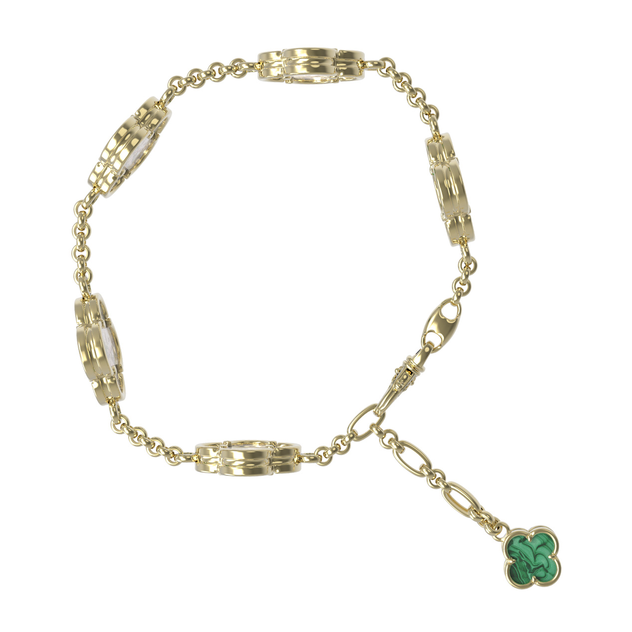 Браслет из лимонного золота 585 пробы c малахитом и перламутром