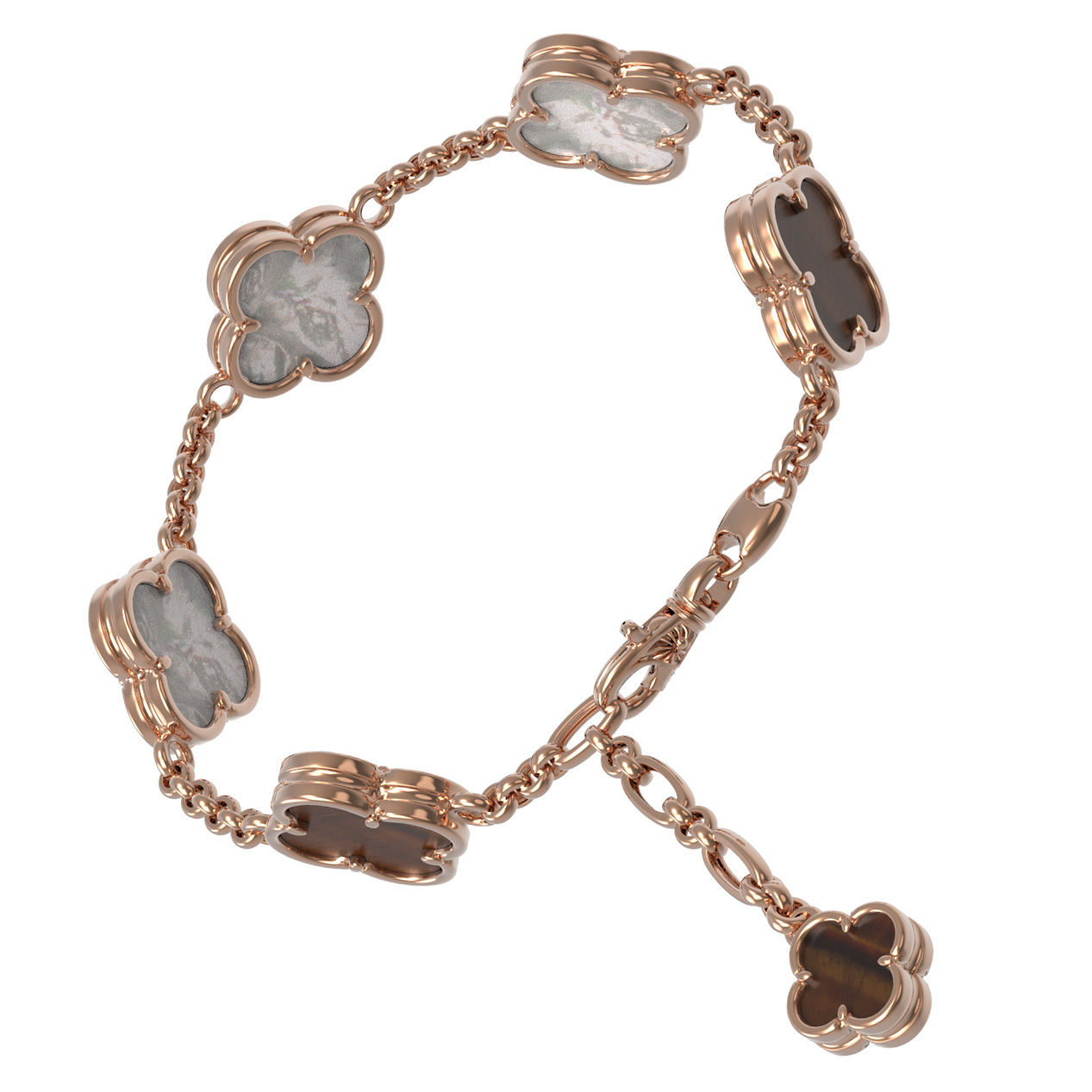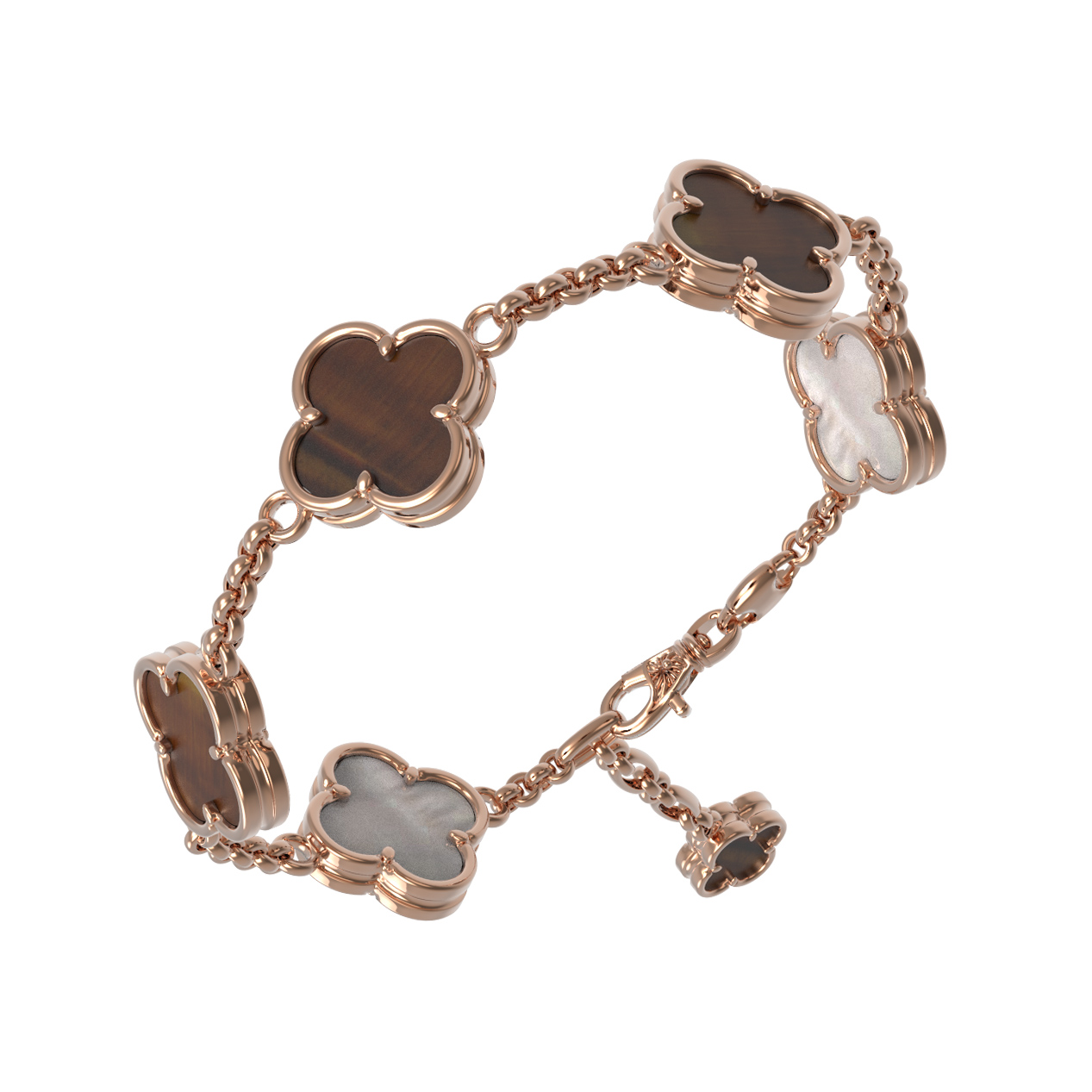 Элегантный золотой браслет из коллекции De Luxe — Клевер весна станет безупречным акцентом вашего образа, подчеркивая утонченный вкус и внимание к деталям. Это ювелирное изделие выполнено из красного золота 585 пробы, которое придает украшению теплый и благородный оттенок. Дизайн браслета основан на изящных мотивах клевера, что делает его универсальным аксессуаром, который подойдет как для женщин, так и для мужчин, ценящих статус и эстетику.
