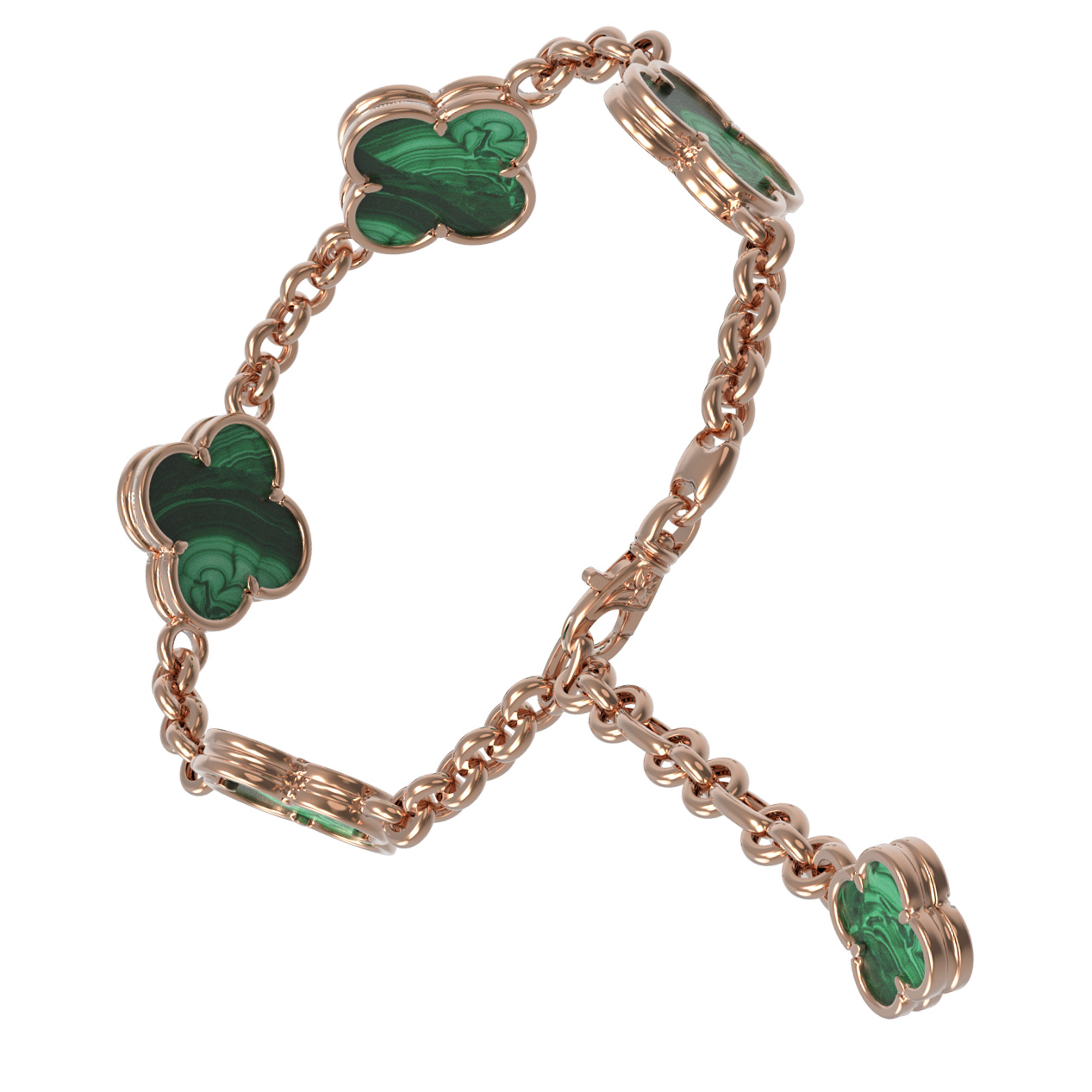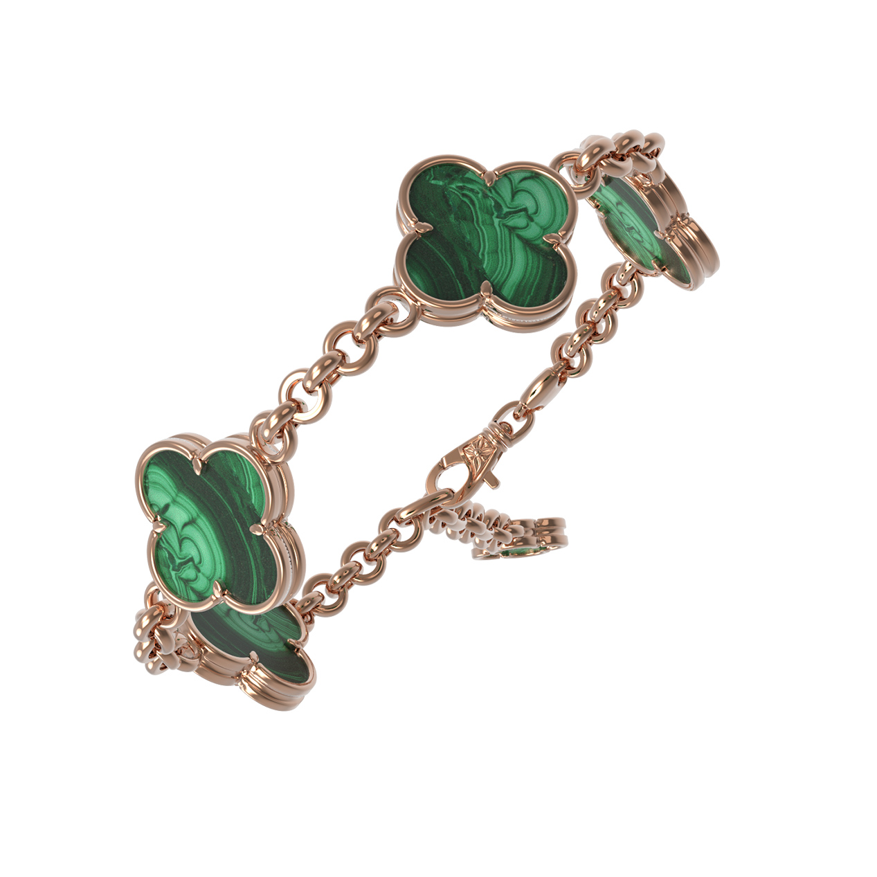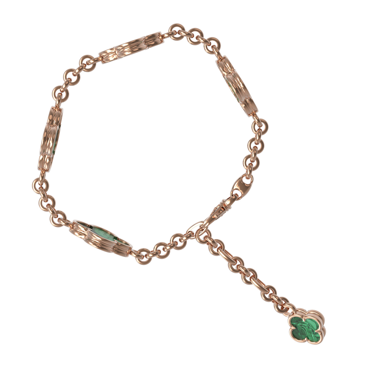 Браслет из красного золота 585 пробы c малахитом