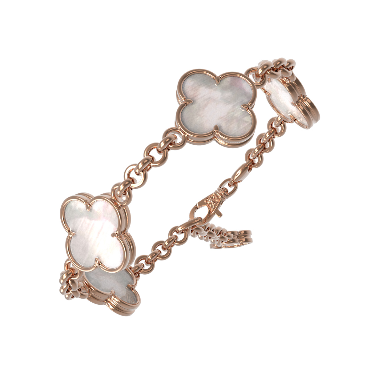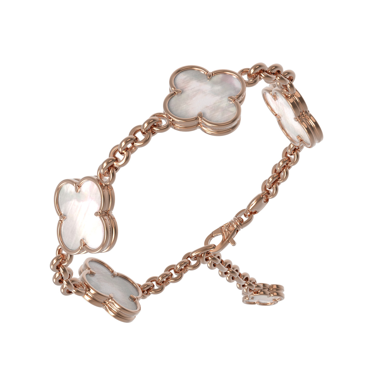 Выбирая украшения из коллекции De Luxe — Клевер весна, вы делаете ставку на актуальную классику, которая сохранит свою привлекательность на долгие годы. Перламутр гармонично сочетается с красным золотом 585 пробы, создавая мягкий контраст, который привлекает внимание своей чистотой и утонченностью. Этот браслет — воплощение стиля, объединяющее в себе мастерство исполнения и безупречный вкус, идеально подходящий для создания как повседневных, так и вечерних образов.