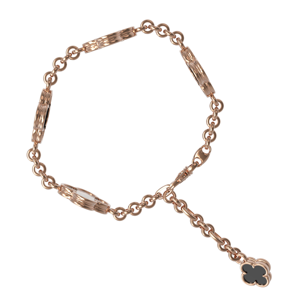 Браслет из красного золота 585 пробы c ониксом и перламутром