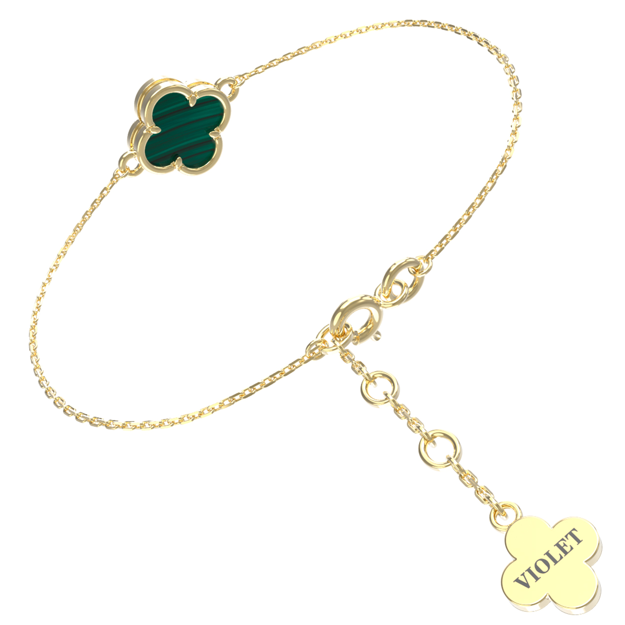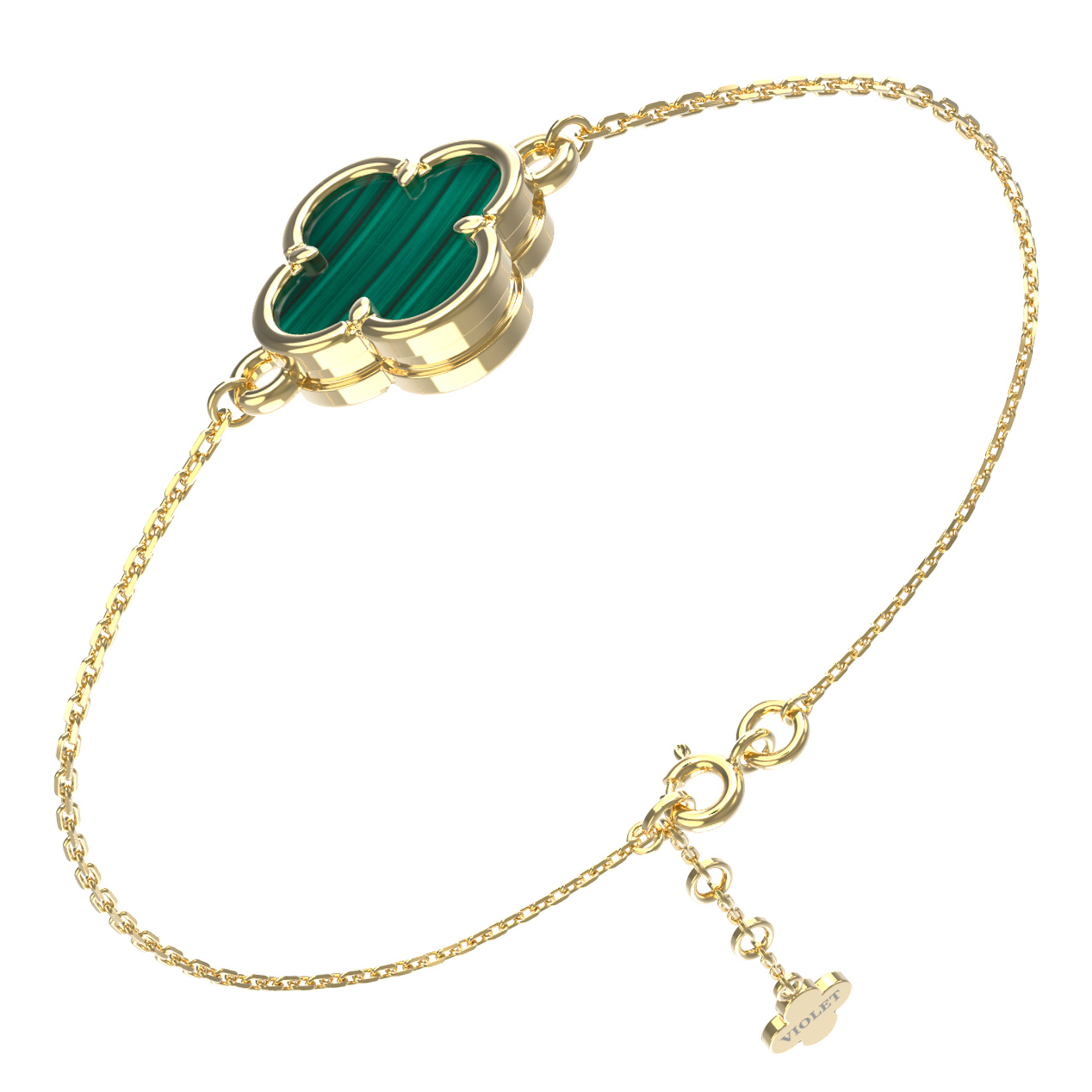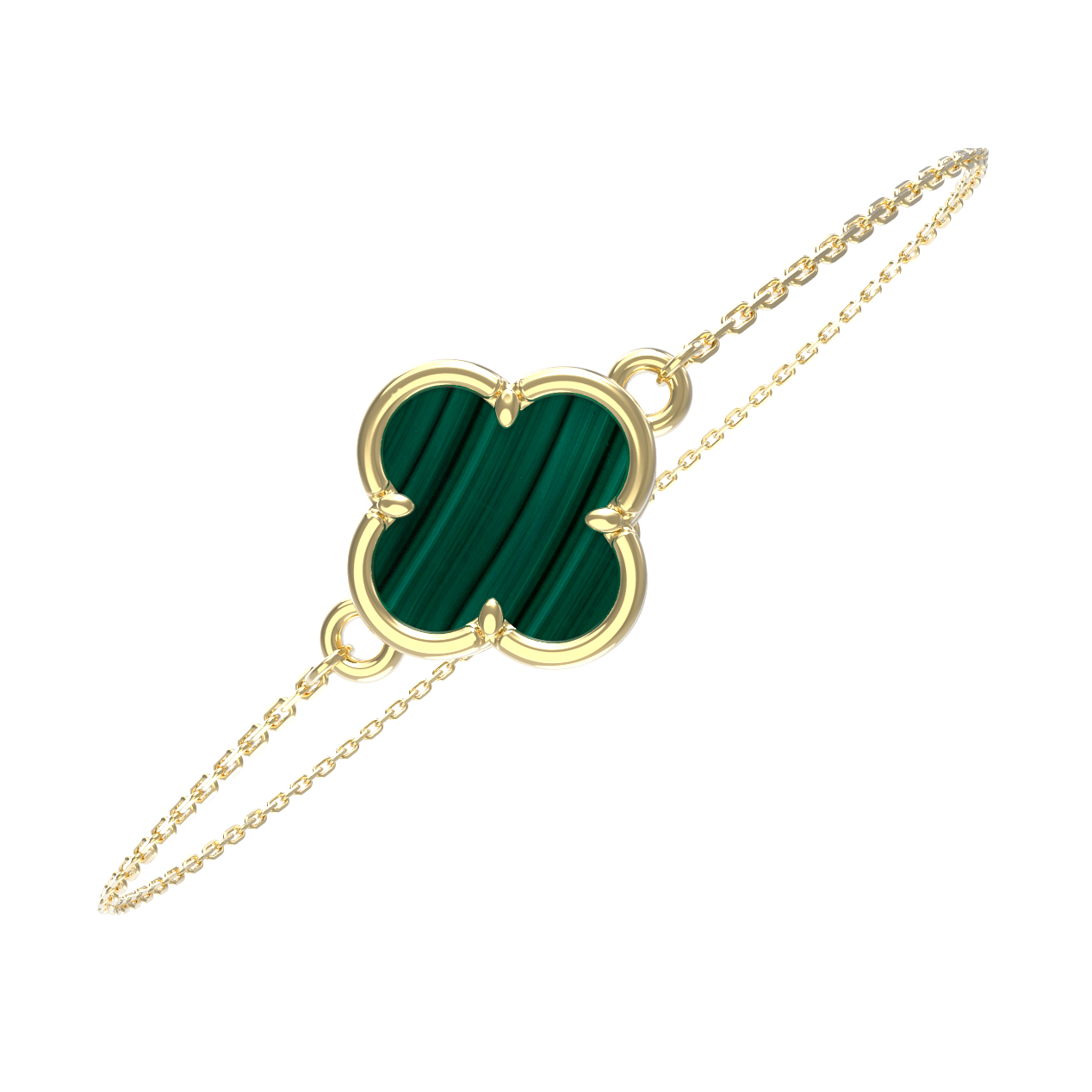 Элегантный и лаконичный браслет из коллекции De Luxe — Клевер весна станет безупречным акцентом вашего образа. Дизайн украшения выполнен в популярной тематике клевер, которая символизирует удачу и гармонию. Основу изделия составляет благородное лимонное золото 585 пробы, чей мягкий, солнечный оттенок идеально подчеркивает глубину драгоценной вставки. В центре внимания — натуральный малахит глубокого зеленого цвета, который притягивает взгляд своим уникальным природным рисунком.