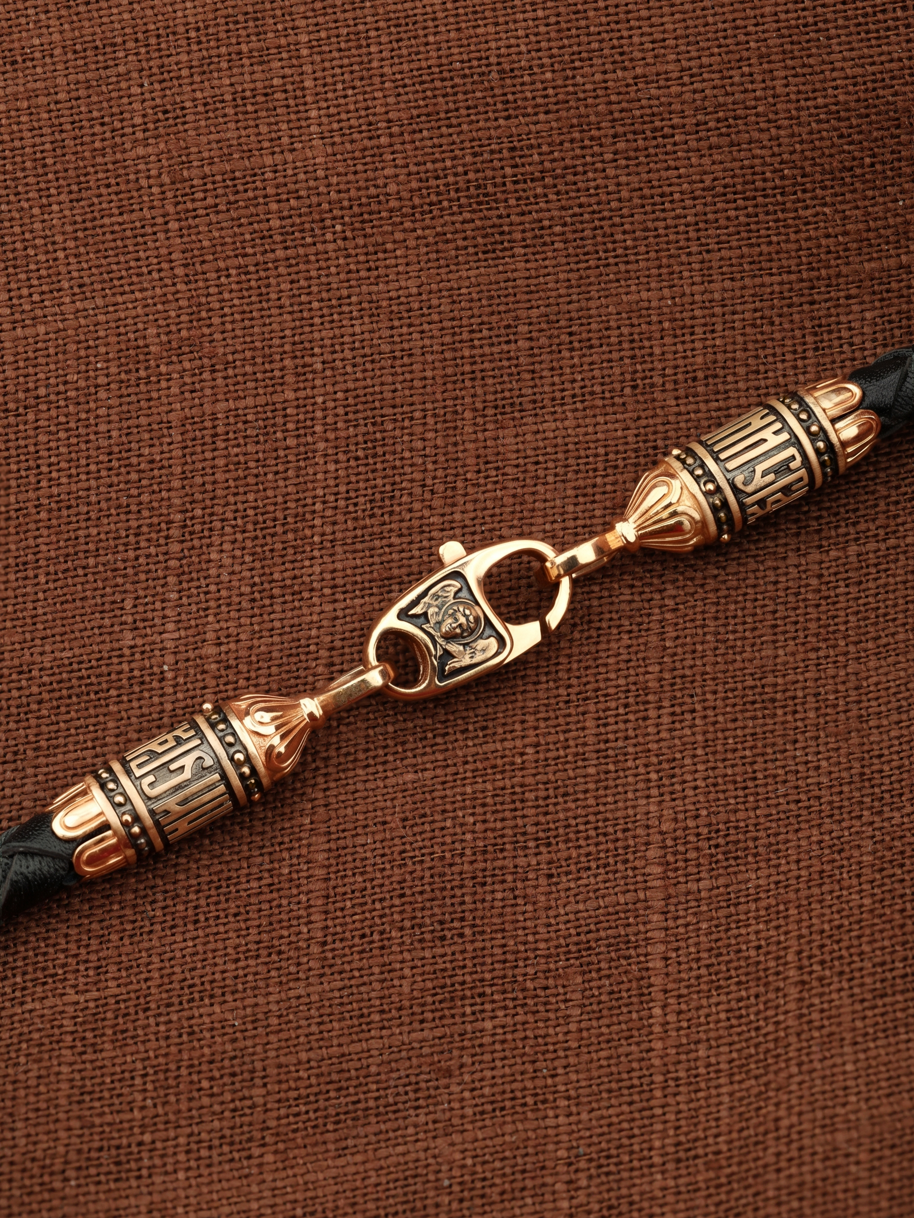 Гайтан из золота c кожаным шнурком