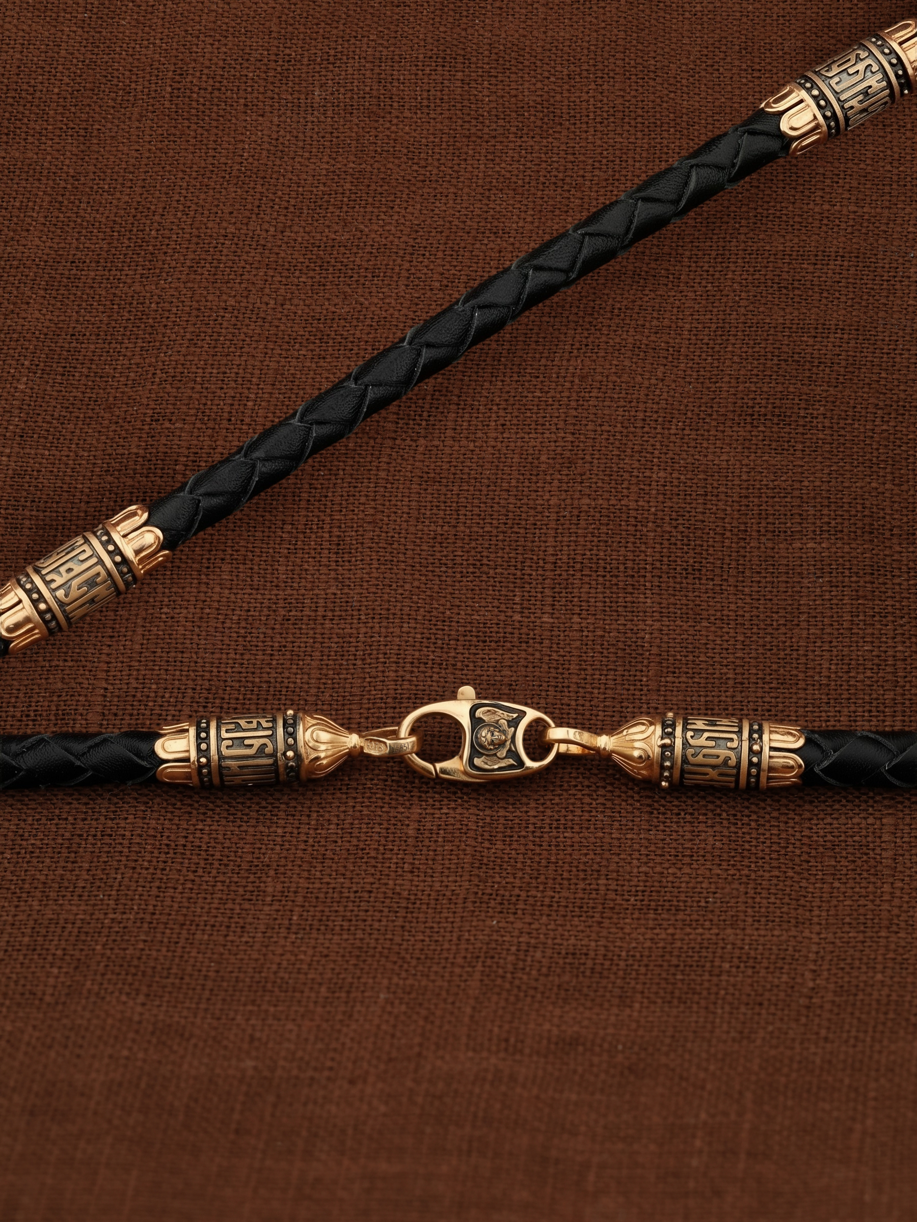 Гайтан из золота c кожаным шнурком