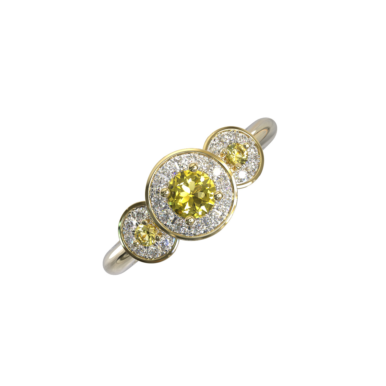 Центральным элементом дизайна является композиция из 27 бриллиантов, которые притягивают взгляд своим великолепным блеском. Использование камней круглой формы в сочетании с желтым цветом вставок создает гармоничный и завершенный образ. Тщательно проработанная архитектура украшения делает его статусным дополнением к повседневному или вечернему гардеробу.