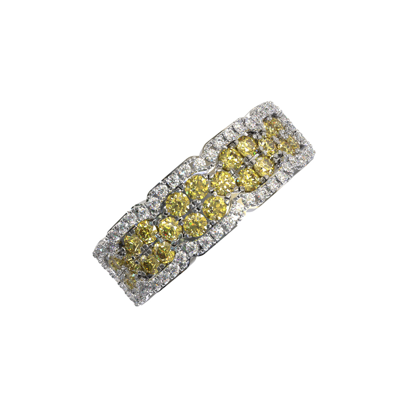 Роскошное кольцо из лимонного золота 585 пробы из коллекции De Luxe Бриллианты — Citrino станет безупречным акцентом вашего образа. Это статусное украшение привлекает внимание своим благородным сиянием, которое подчеркивает эксклюзивный дизайн и безупречное качество исполнения. Утонченная игра света достигается за счет искусной инкрустации: модель украшают 80 великолепных бриллиантов круглой огранки с изысканными желтыми вставками, создающими завораживающий контраст с теплым оттенком лимонного металла.